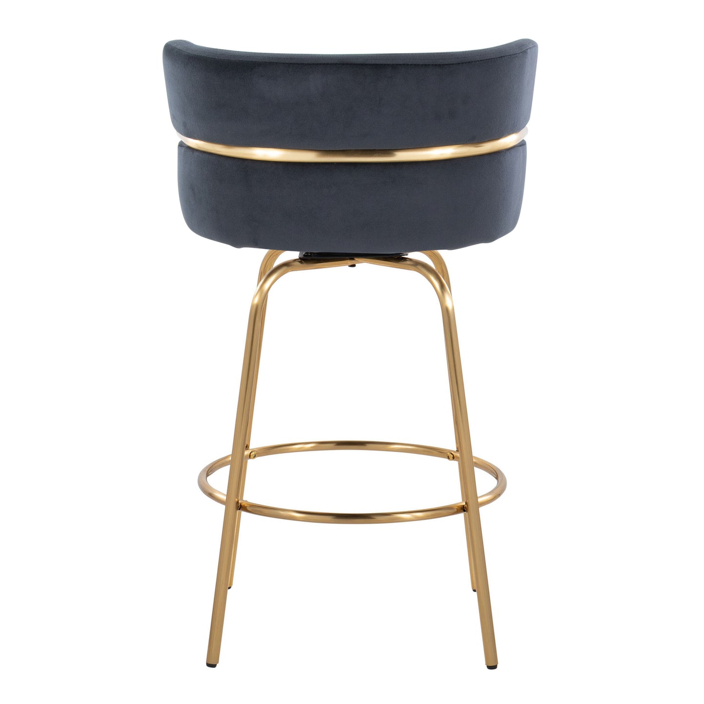 liberate your space with the Stacie 26" Glam Counter Stool set—where sophistication meets comfort. Inspired by the timeless elegance of art deco, this fixed-height counter stool blends luxurious black velvet with gleaming gold metal, creating a captivating statement. The 360-degree swivel ensures versatility, while the padded seat and round footrest offer lasting comfort. Perfect for chic dining rooms or stylish kitchen islands, the Stafan stool transforms everyday seating into a refined experience.