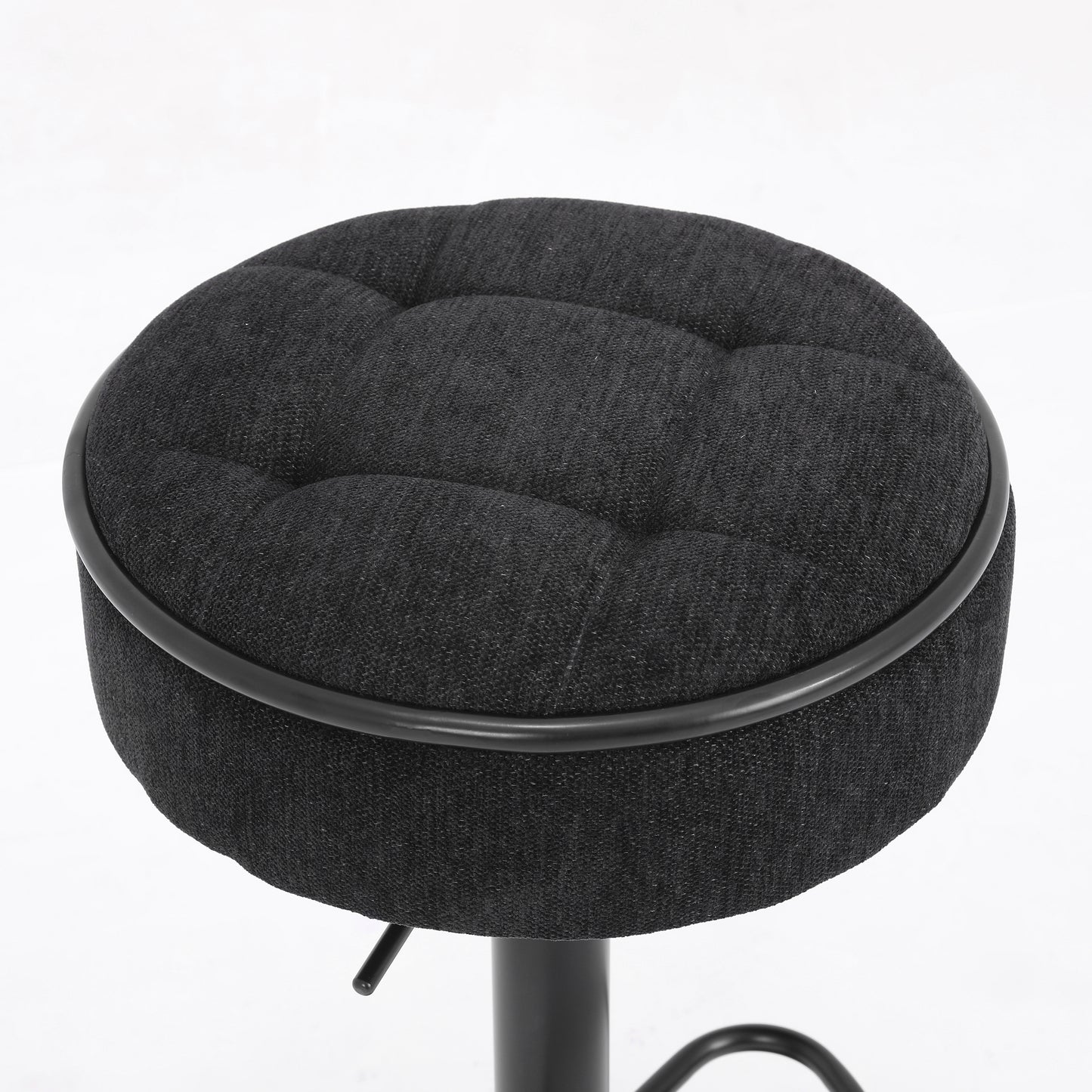Halsten - Set of 2 - 28" Black Linen Adjustable Swivel Bar Stools with Storage, 360° Counter Height, Armless Design for Kitchen and Dining Room