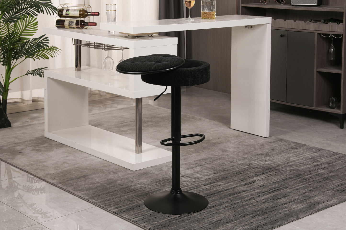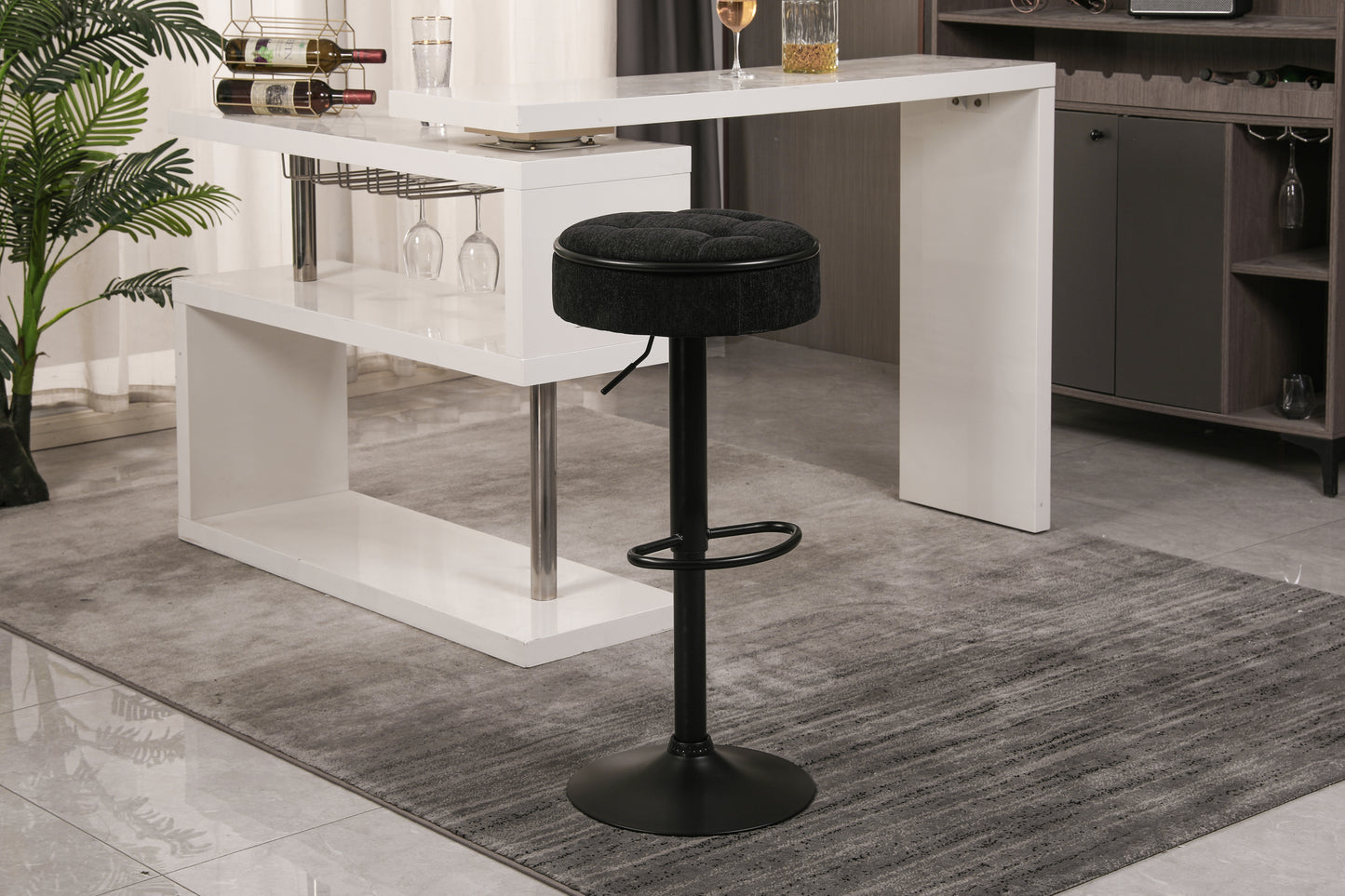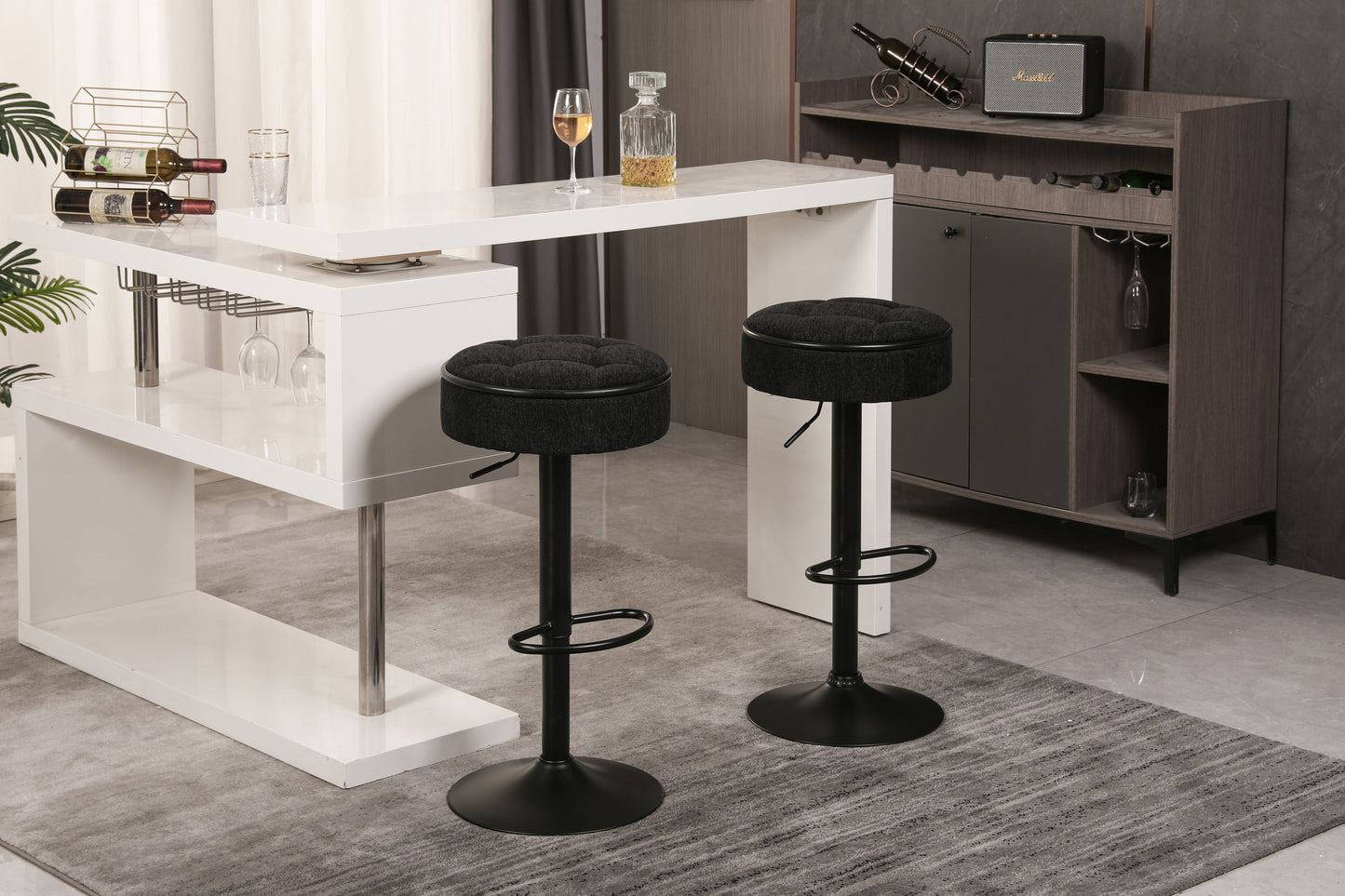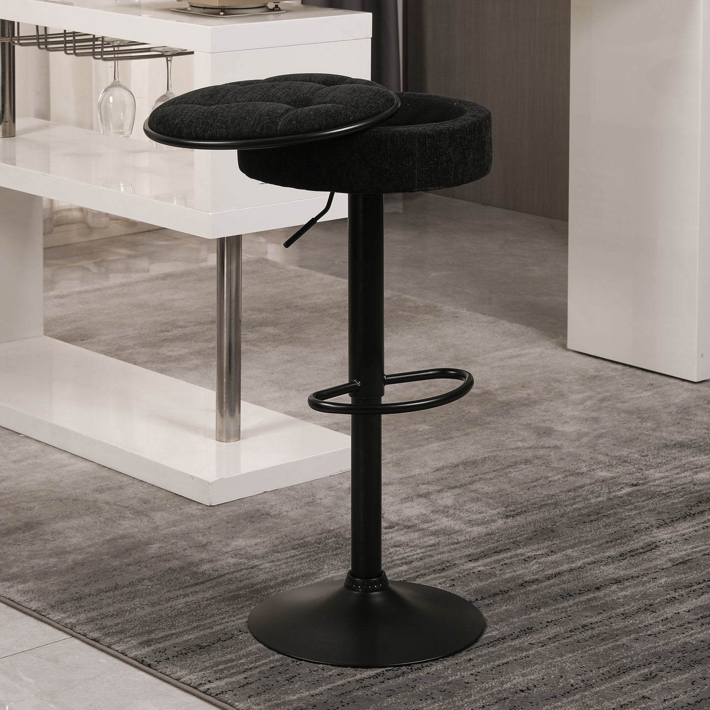 Indulge in the perfect balance of comfort and luxury with these beautifully crafted bar stools. Their sleek black linen upholstery and elegant design make them a statement piece in any room. The adjustable height and 360° swivel functionality offer exceptional convenience, while the hidden storage compartment adds a layer of practicality. Transform your space into a cozy yet stylish retreat with these multifunctional stools.