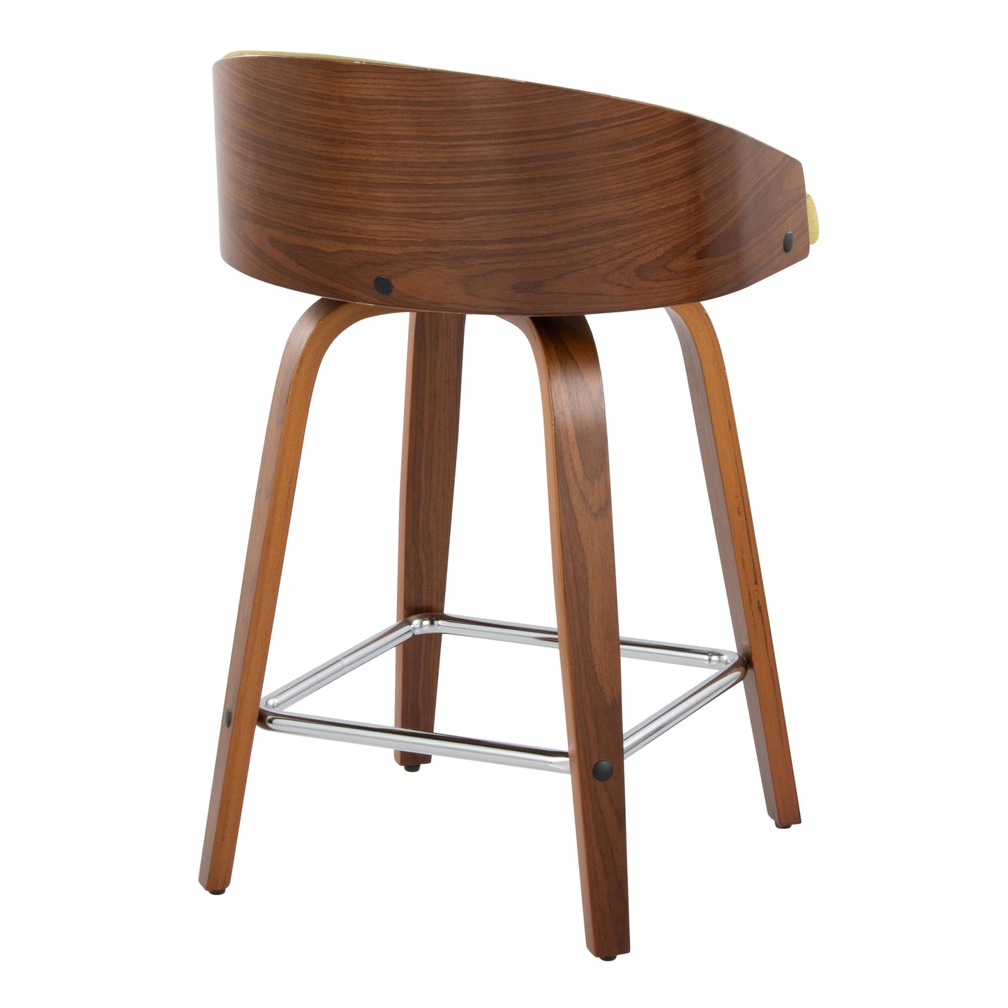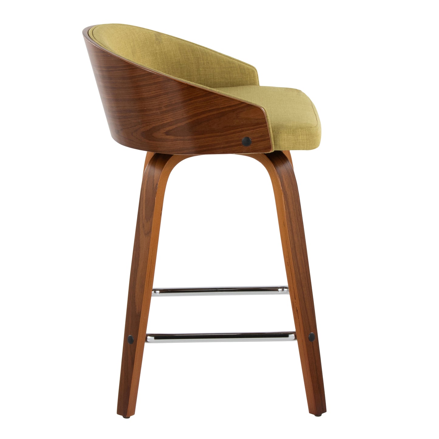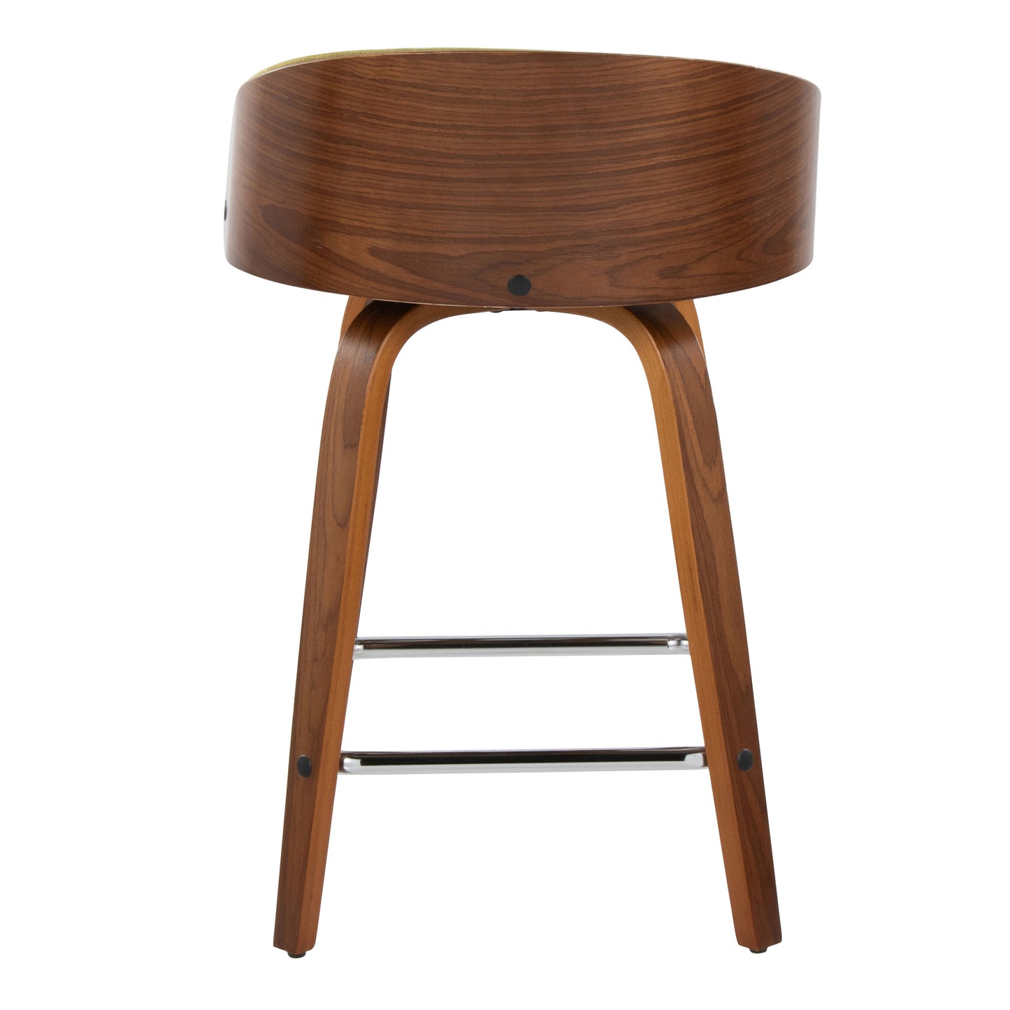 View compareShiraz - Set of 2 - 24" Mid-Century Modern Walnut Swivel Counter Stools in Green Fabric with Square Chrome Footrest