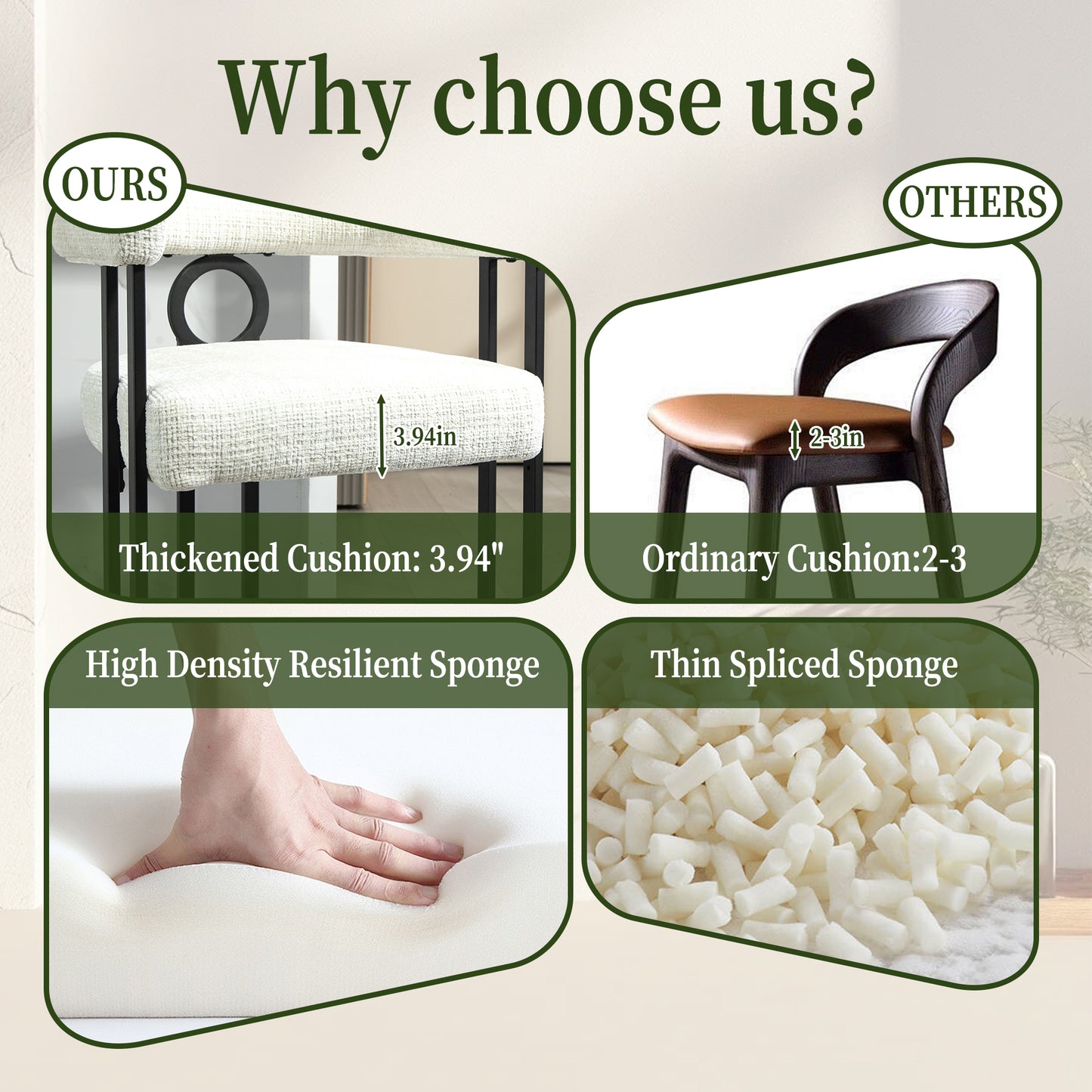 - Sturdy Metal Frame: Made with a solid metal base for strength and stability, supporting up to 300 lbs, and complemented with matte black legs for a touch of sophistication.
