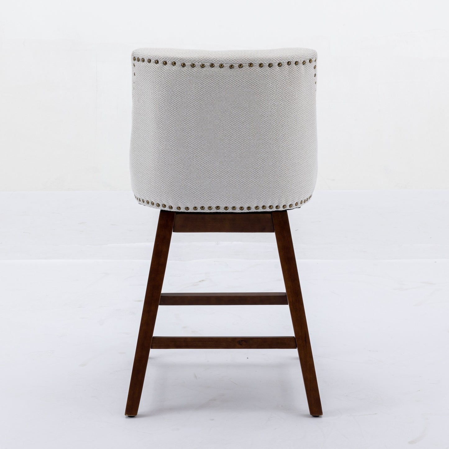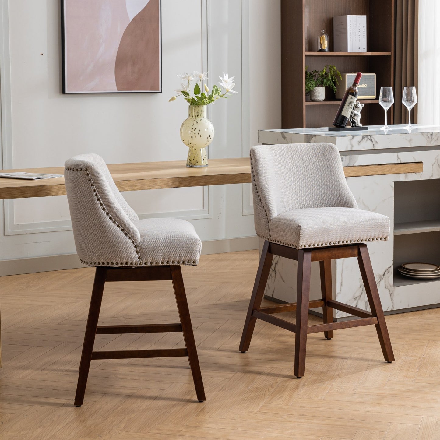 Avalon - Set of 2 - 26" Ivory Upholstered Counter Height Swivel Bar Stools with Curved Back, American Design, and Solid Rubber Wood Legs