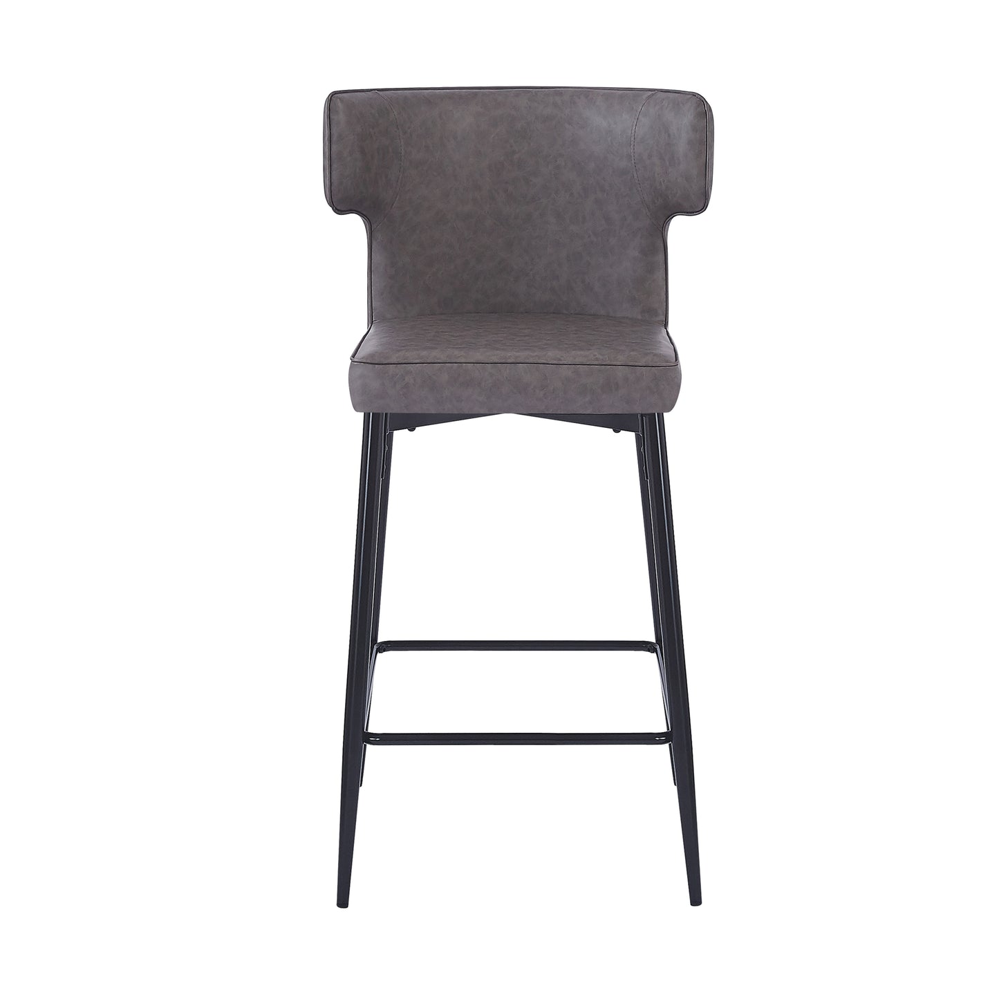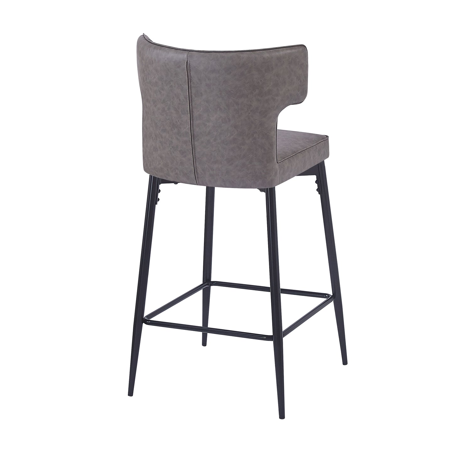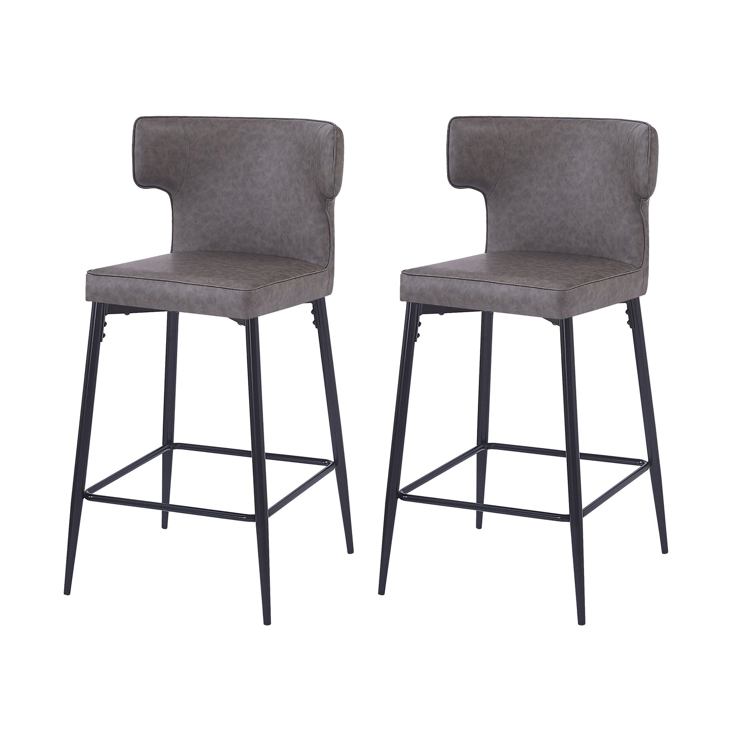View compareSage - Set of 2 - 28" Gray Leather Counter Bar Stools with Metal Footrest and High Back – Modern Kitchen & Bar Chairs