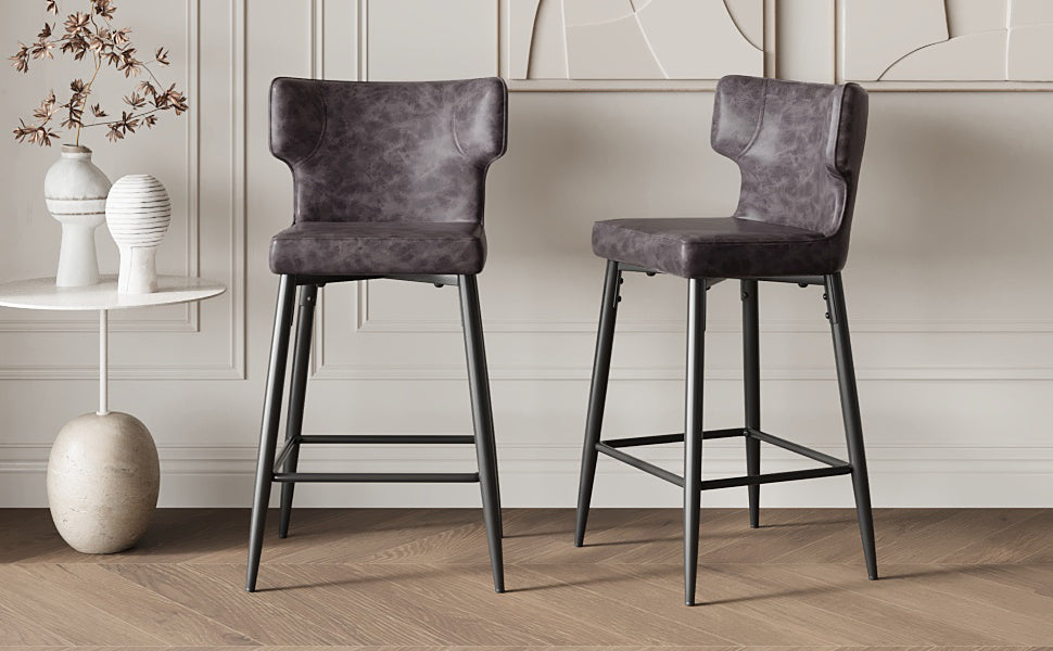 Sage - Set of 2 - 28" Gray Leather Counter Bar Stools with Metal Footrest and High Back – Modern Kitchen & Bar Chairs