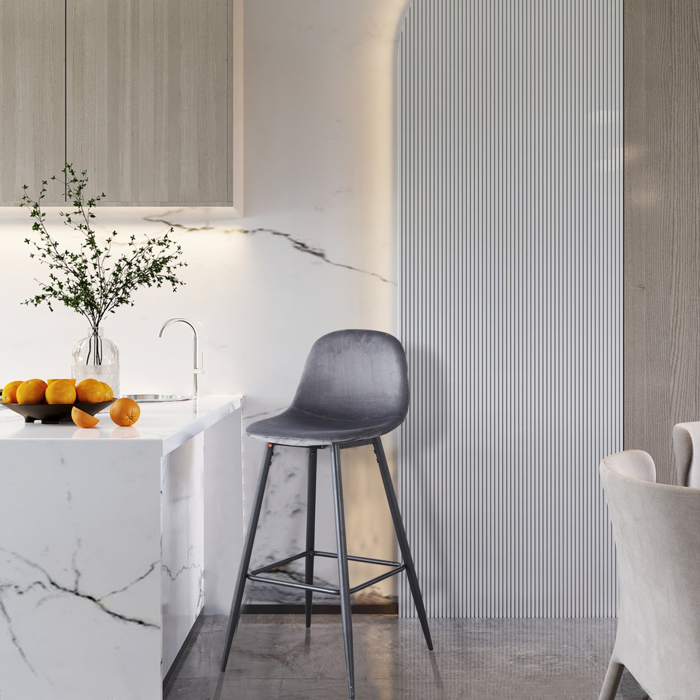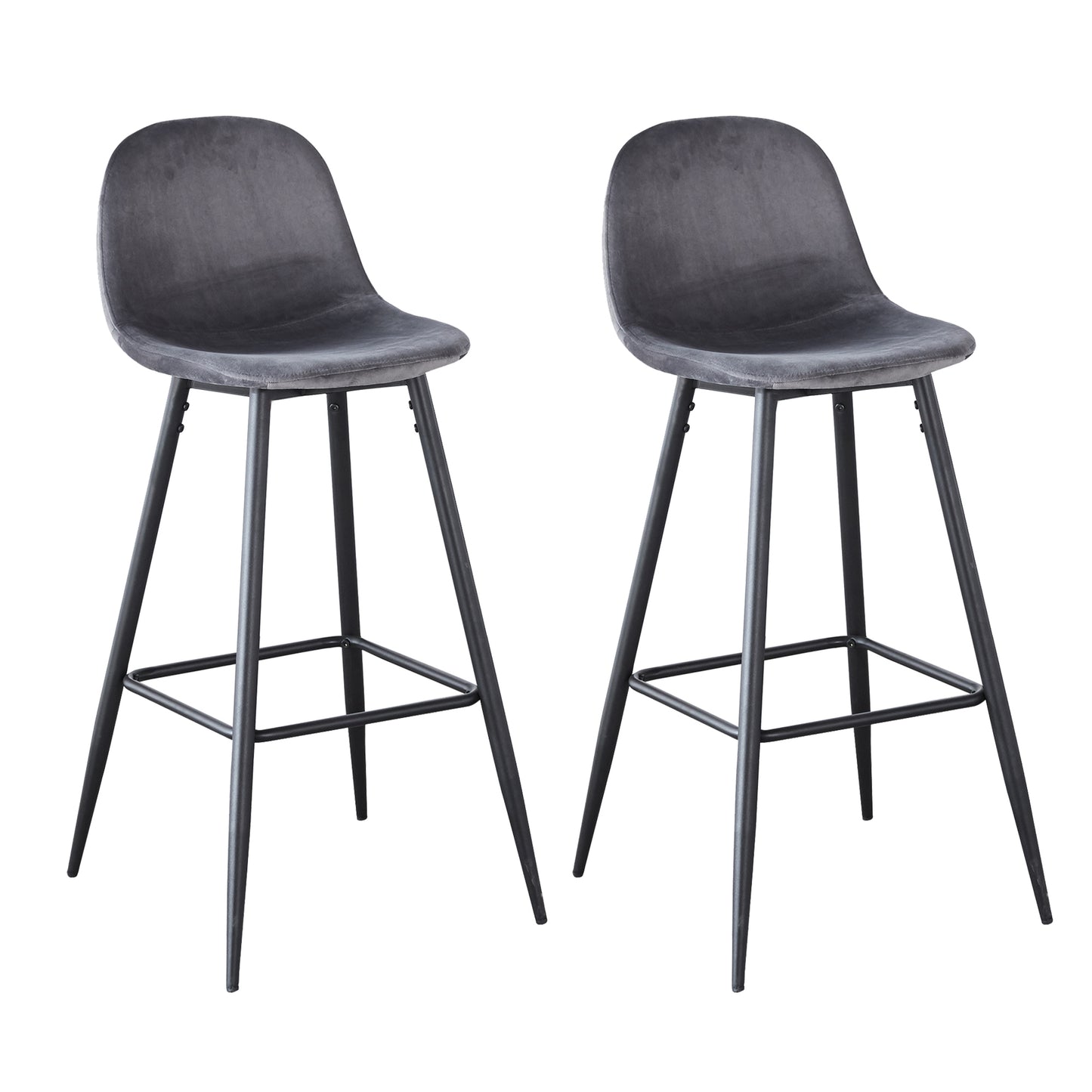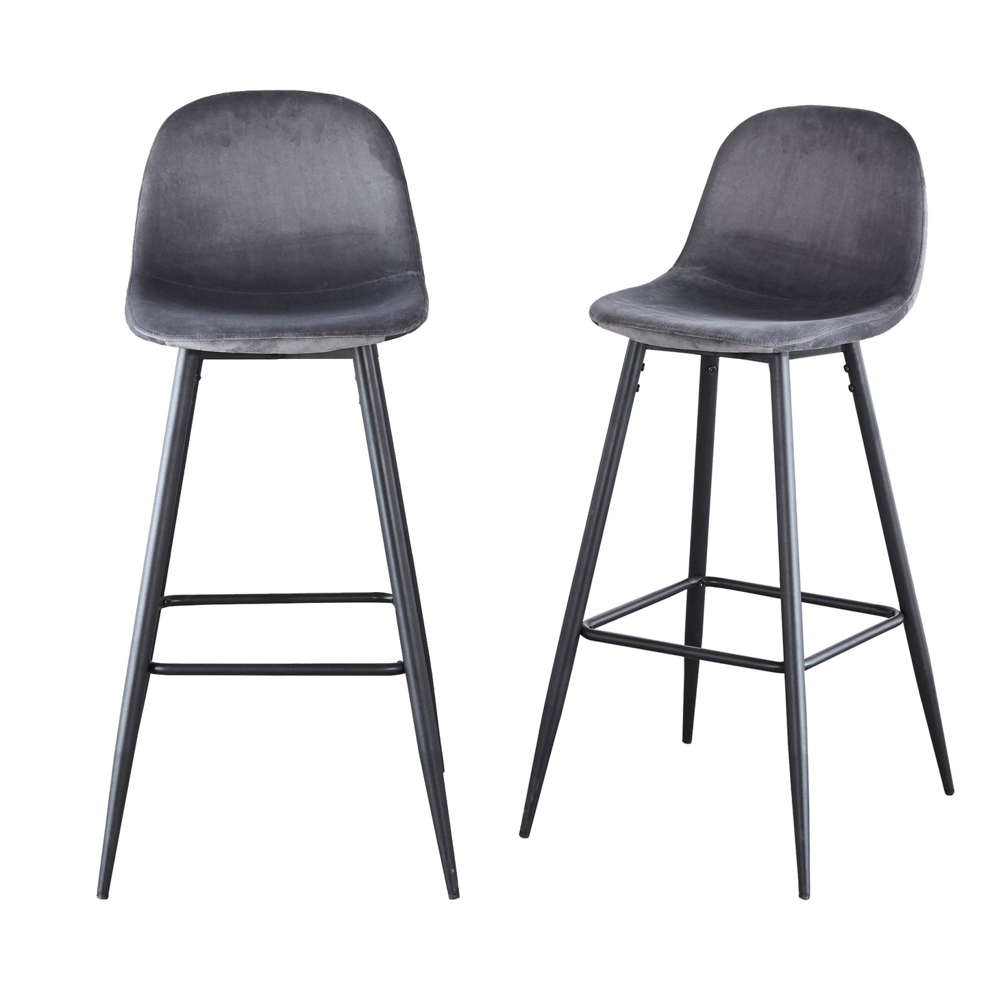 Perfect timeless elegance and modern functionality to your space with the Nero - Set of 2 - 30" Dark Grey Velvet Bar Stools. This set of two 30" counter-height chairs features plush dark grey velvet upholstery and a sleek, ergonomic design that ensures both comfort and style. The sturdy black metal frame with integrated footrests enhances durability while adding a contemporary touch to your kitchen, bar, or dining area. Whether you're entertaining guests or enjoying a casual meal, the Astoria Bar Stools deliver luxury and practicality in equal measure.
