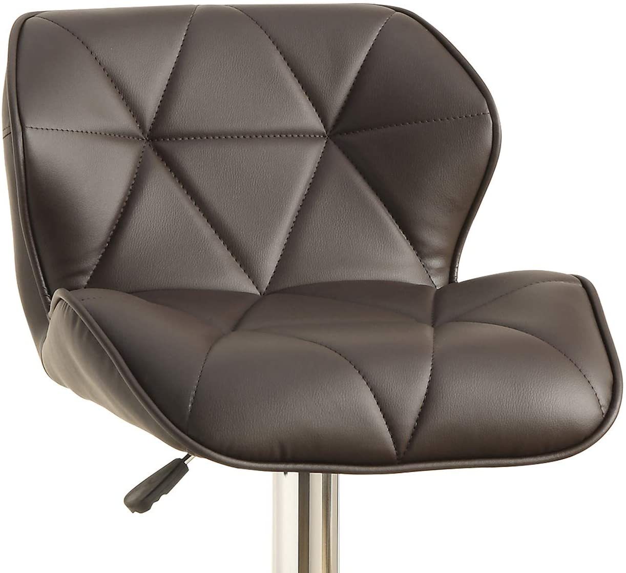 Renew your dining or kitchen space with the Hazelton Adjustable Counter Height Stools. Crafted with comfort and style in mind, these stools feature a sleek brown faux leather seat with elegant tufted detailing, providing both support and luxury. The sturdy chrome base ensures durability, while the gas lift mechanism allows easy adjustment to suit your seating needs. Whether you're enjoying a meal or entertaining guests, these modern stools offer versatility and sophistication for any setting.