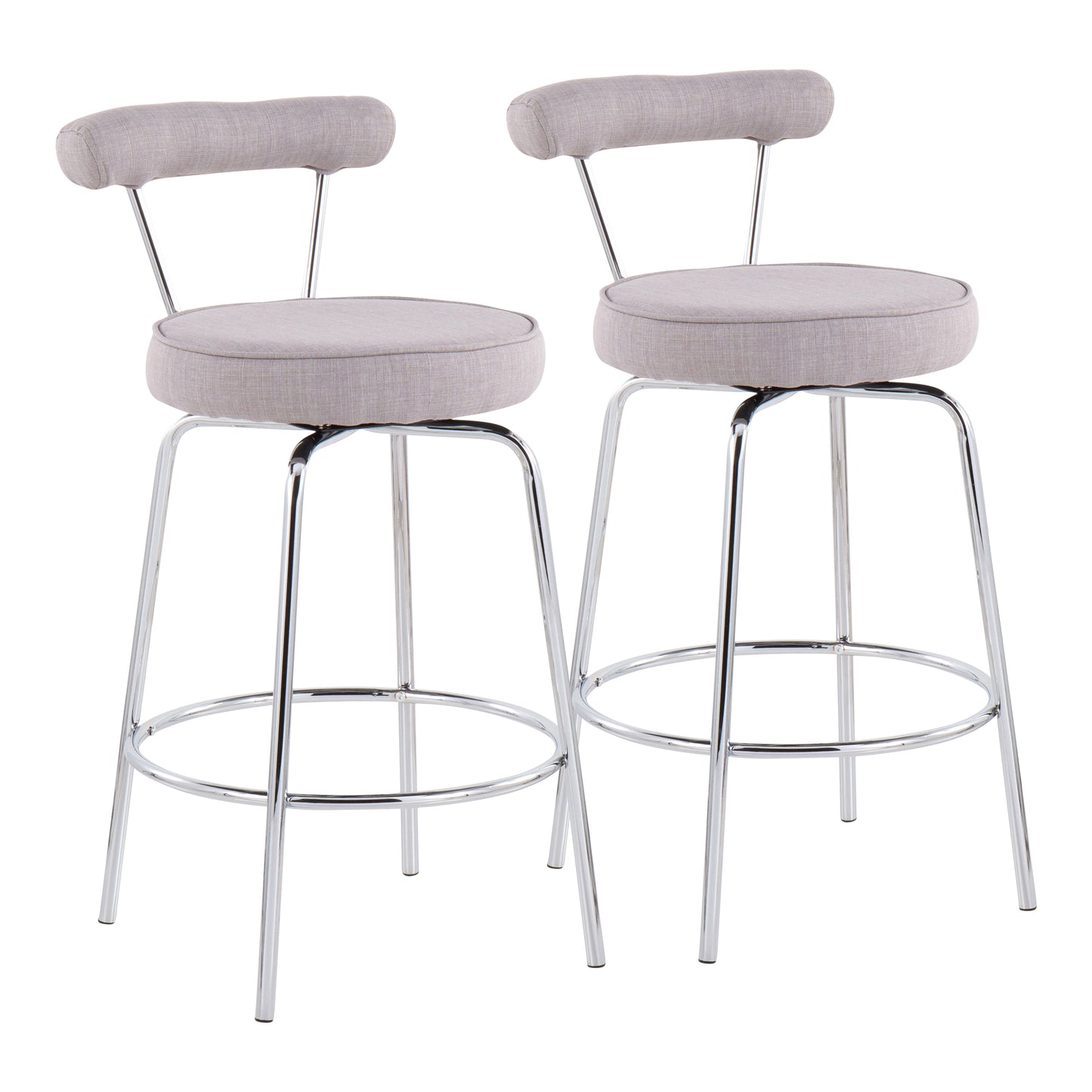 Rosetta - Set of 2 - 24" Chrome and Light Grey Fabric Swivel Counter Stools