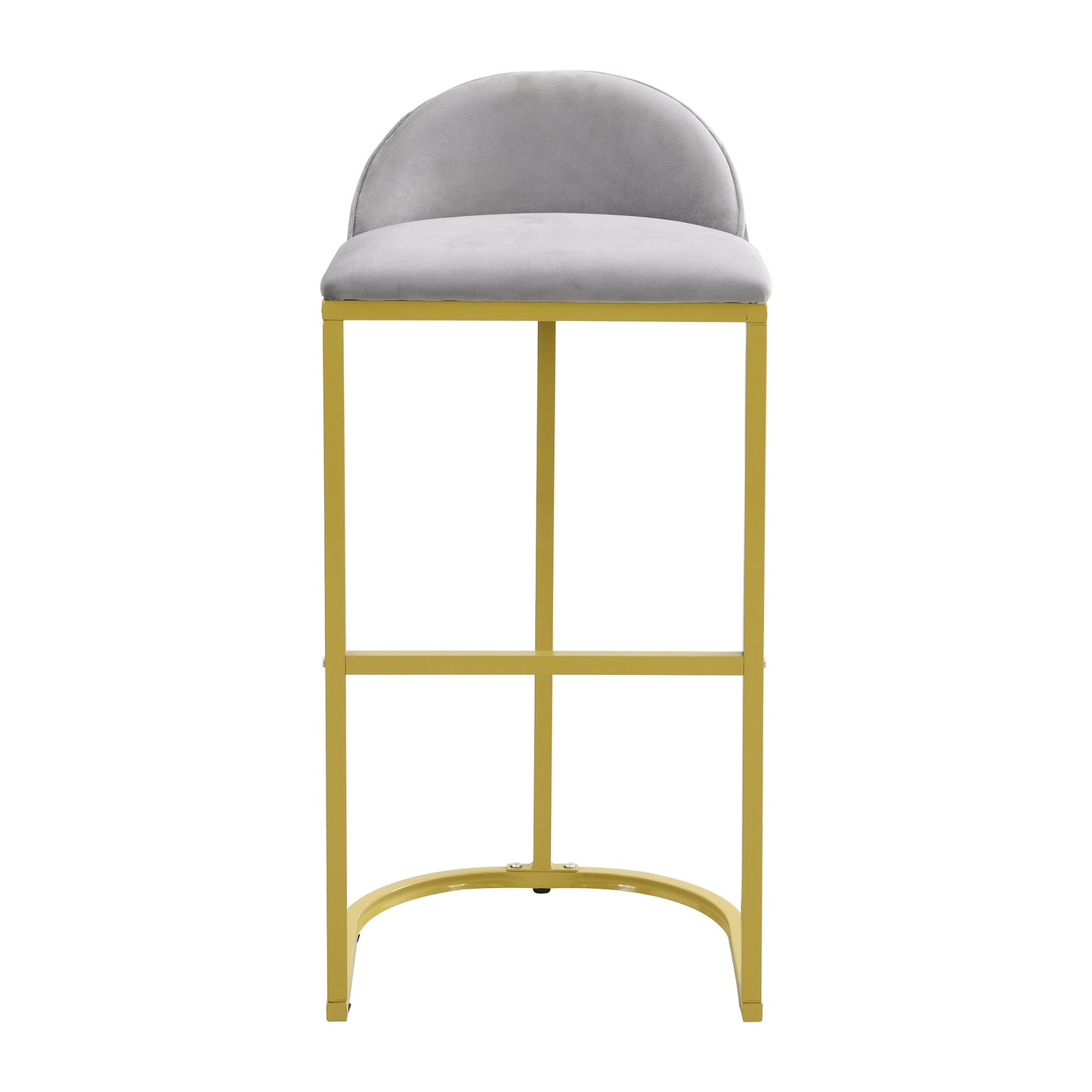 Thaddeus - Set of 2 - 30" Grey Velvet Upholstered Bar Stools with Gold Metal Frame, Padded Backrest, and Footrest