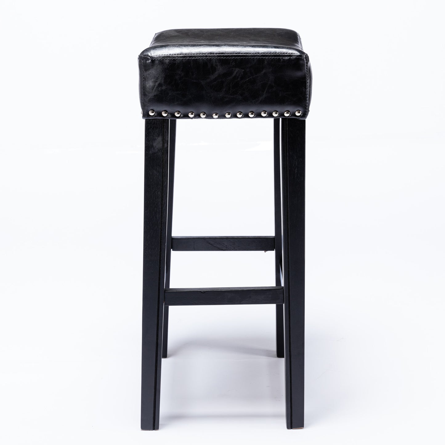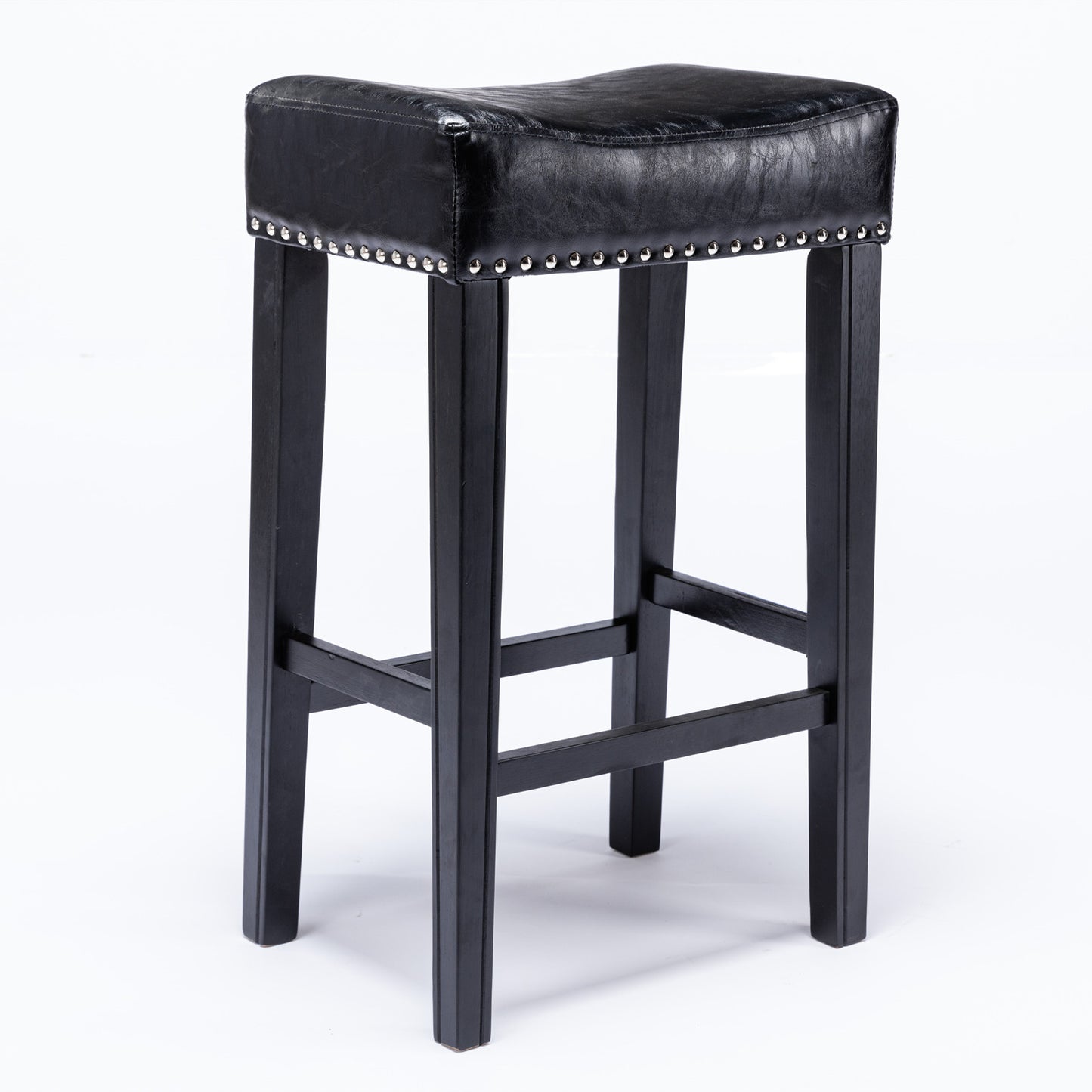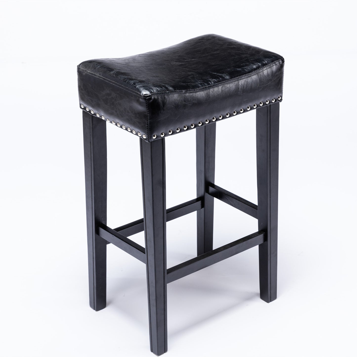 Enhance your home decor with the Hazelwood Set of 2 Black Faux Leather Counter Height Stools. Designed with a timeless farmhouse style, these backless stools offer both comfort and versatility. Upholstered in durable black faux leather and filled with plush foam, they provide a soft yet supportive seating experience. The 29-inch seat height is ideal for kitchen counters, bars, or dining areas, while the sleek design adds an elegant touch to any room.