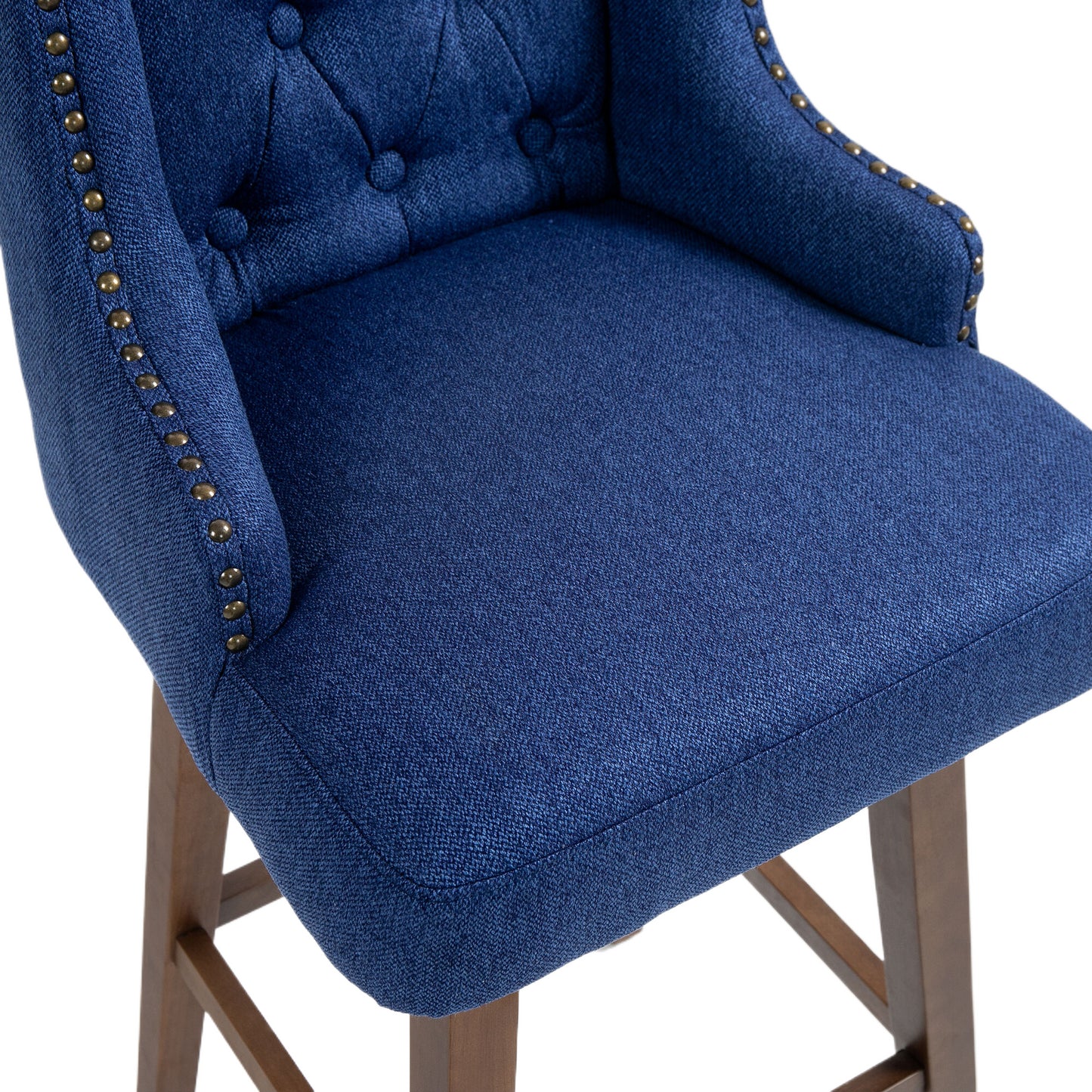 Morrithal - Set of 2 - 30" Navy Linen Counter Height Bar Stools with 360° Swivel, Footrest, Solid Wood Legs, and Retro Style for Kitchen or Dining Room