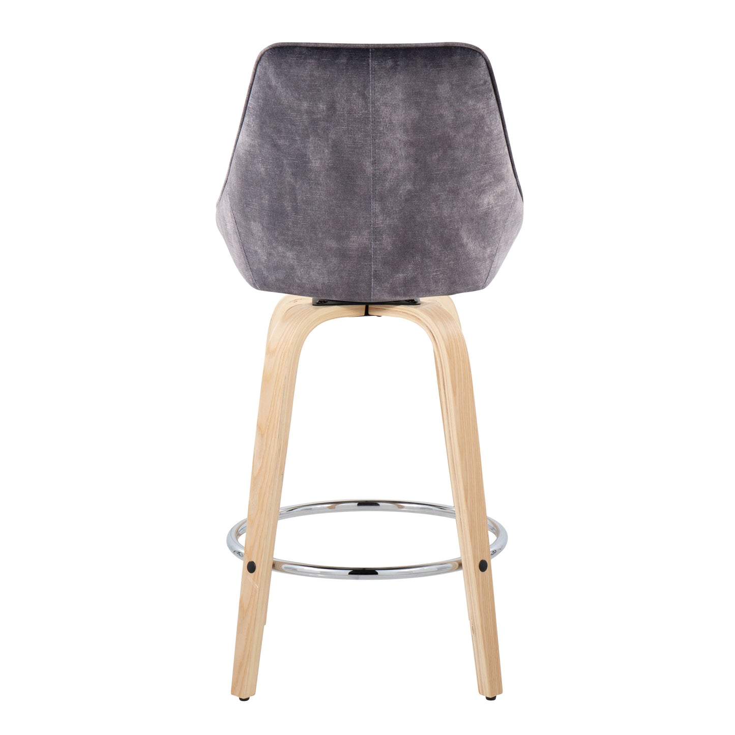 View compareCieloVibe - Set of 2 - 24" Fixed-Height Counter Stools in Grey Velvet with Natural Wood Legs and Round Chrome Footrest