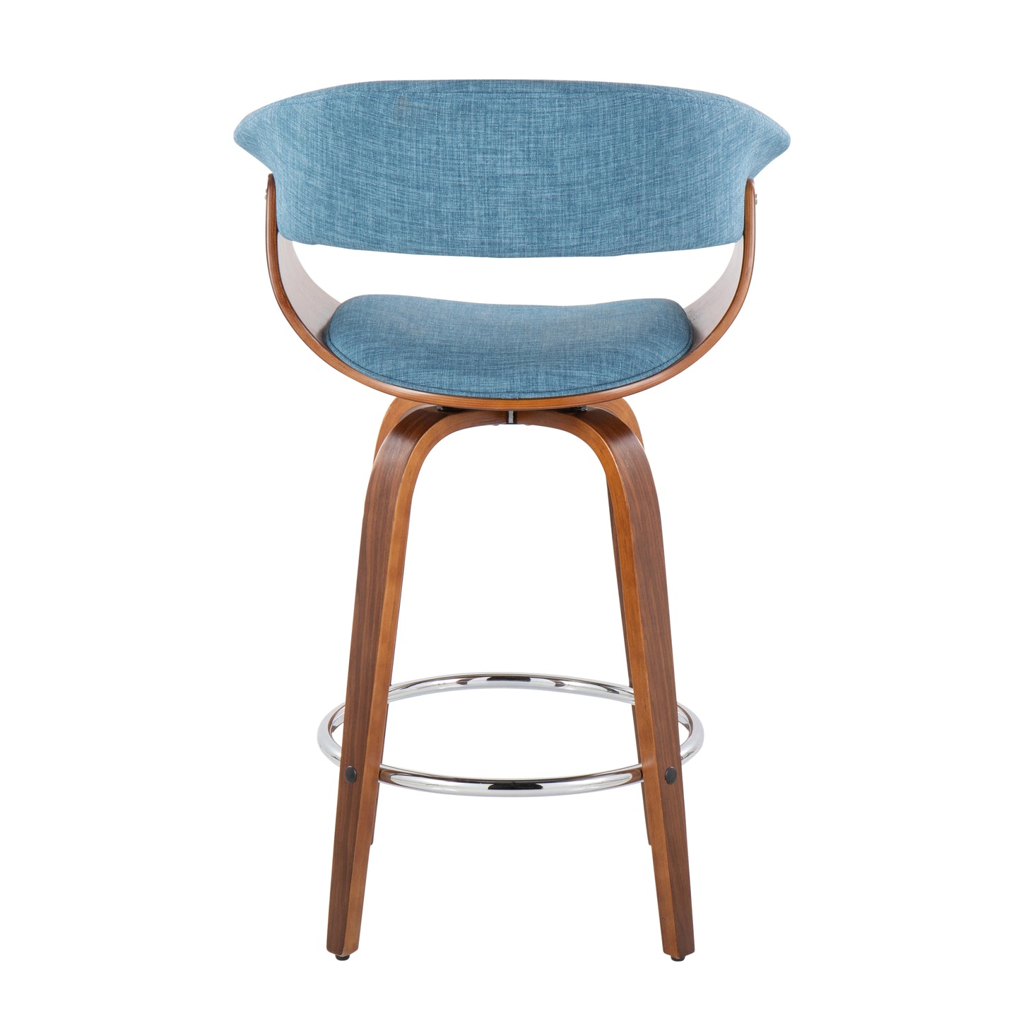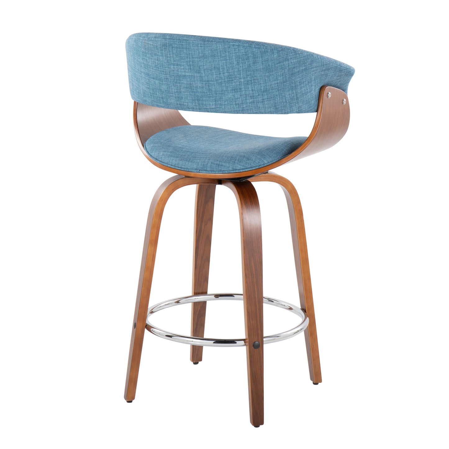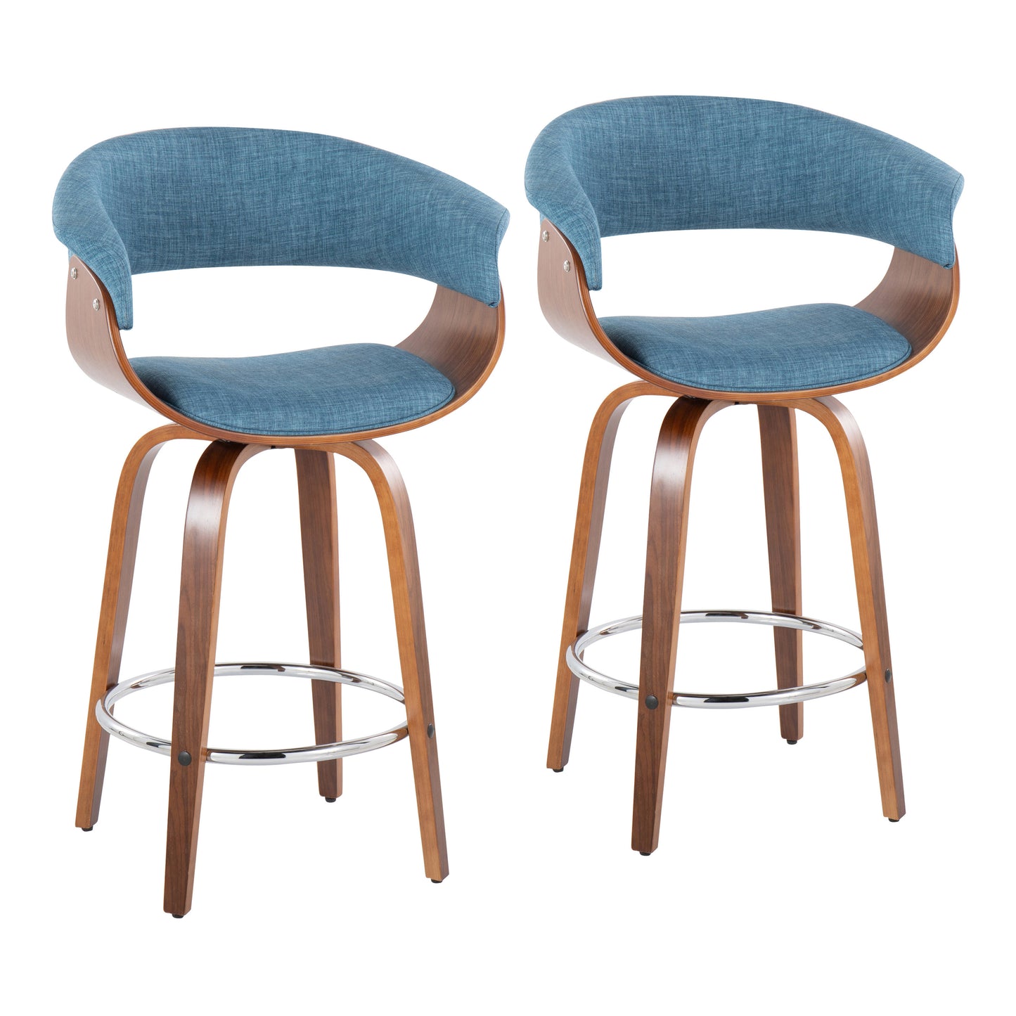 View compareHanford - Set of 2 -24"- Walnut Wood & Blue Fabric Mid-Century Counter Stools with 360° Swivel