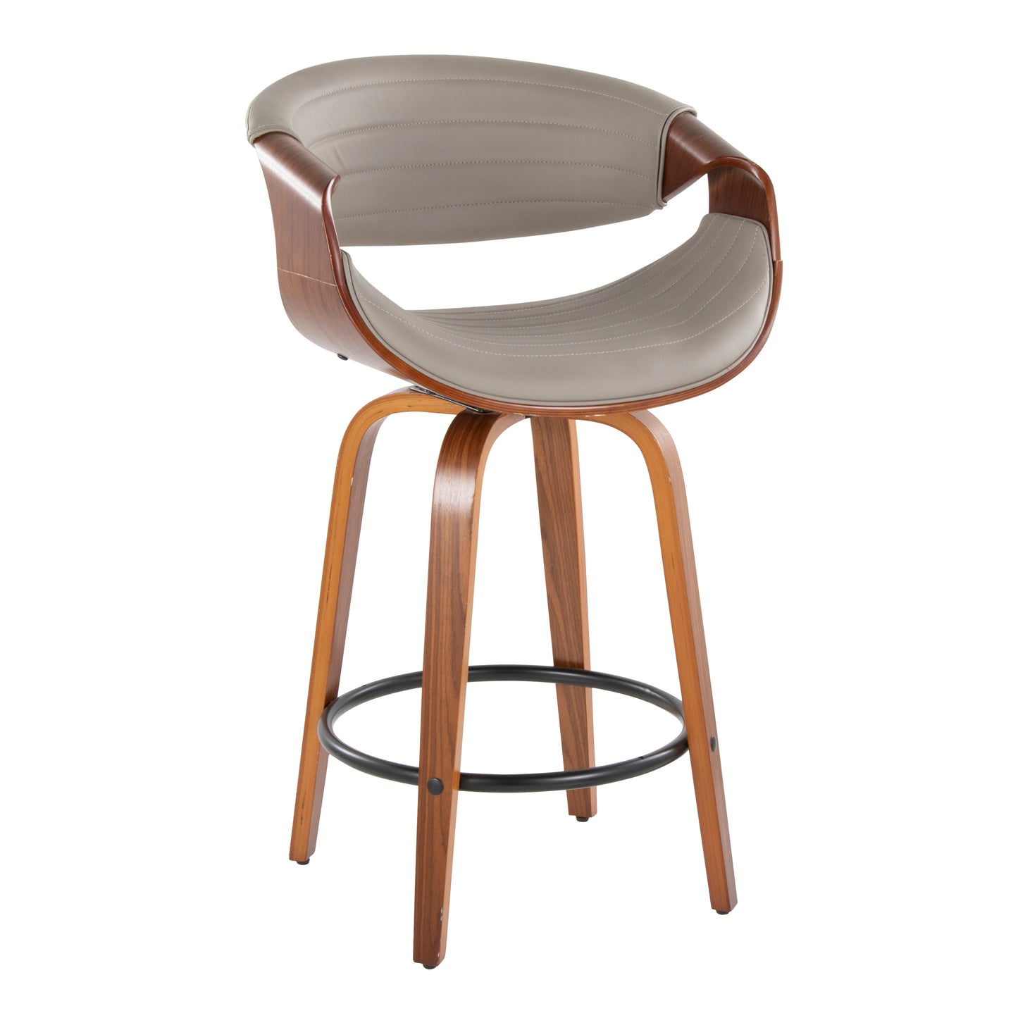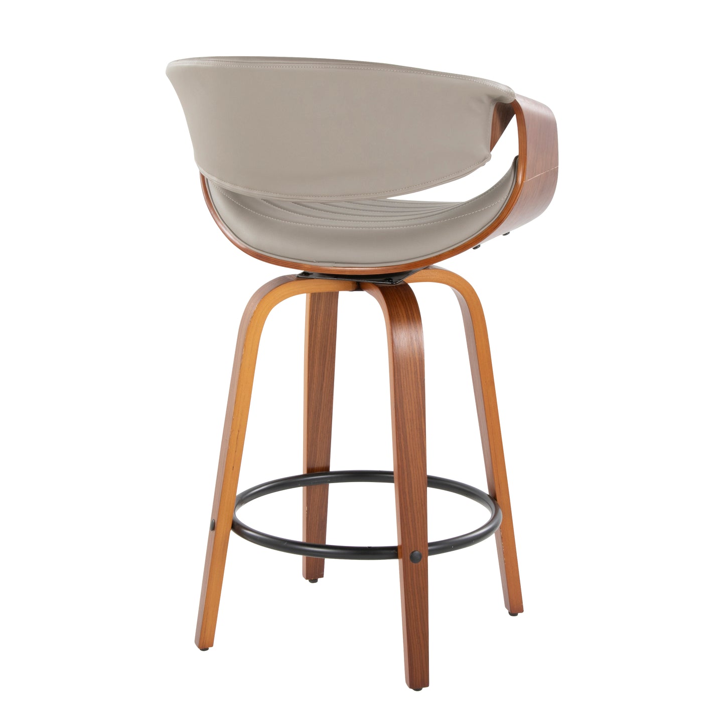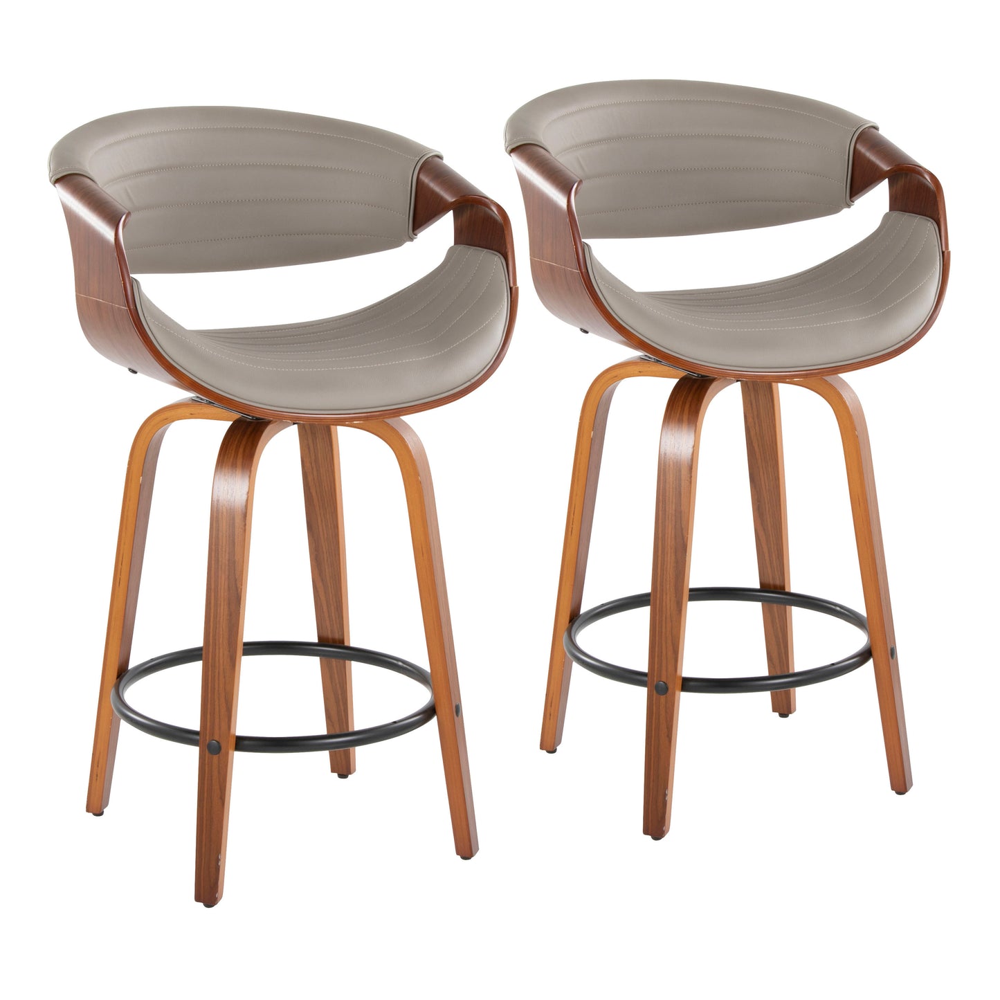 View compareLyrion - Set of 2 - 24" Walnut & Grey Faux Leather Mid-Century Modern Counter Stools with 360° Swivel