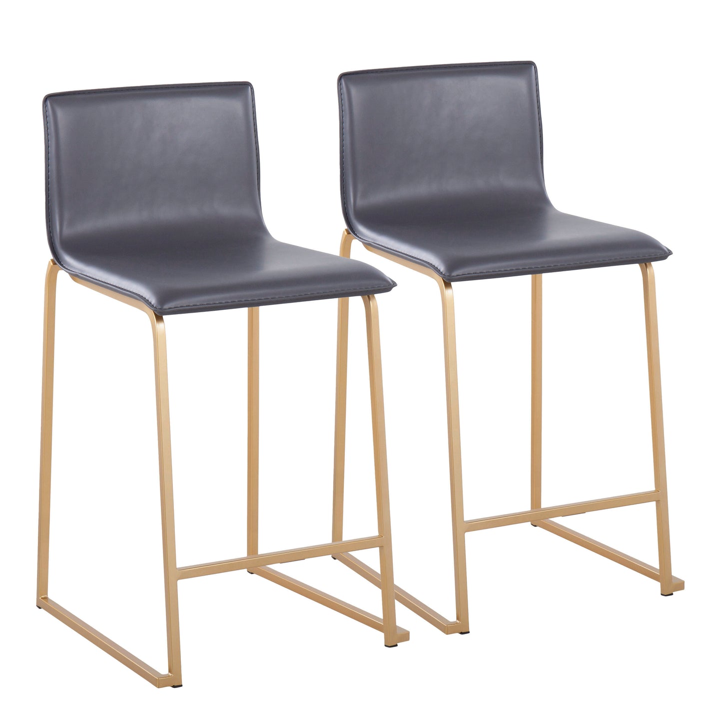 View compareMazarine - Set of 2 - 26" Counter Stools with Gold Metal Frame and Grey Faux Leather Upholstery, Modern Kitchen Seating