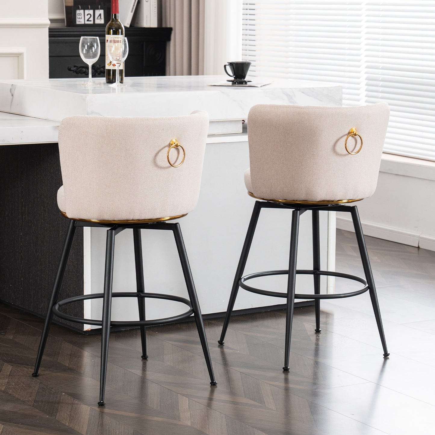 View compareMerrickket - Set of 2 - 34" Beige Swivel Bar Stools with High-Back, Adjustable Upholstered Seats and Elegant Metal Accents for Kitchen, Bar, or Dining Room