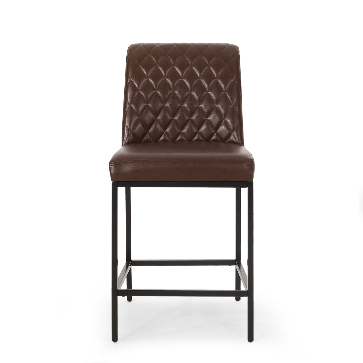 Bring style and comfort to your kitchen or dining area with this set of two counter stools. Designed with a contemporary aesthetic, these stools feature clean lines and a tufted diamond-stitch detail on the high backrest. Upholstered in smooth dark brown leather, they offer a timeless look that complements a variety of decor styles.