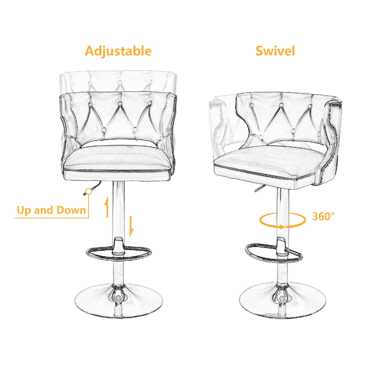 Transform your kitchen or dining area into a luxurious space with the Virtell Counter Height Bar Stools. Featuring a sleek velvet black upholstery, these stools combine modern elegance and comfort, making them a perfect addition to any contemporary or glam-inspired decor. The adjustable seat height ranges from 26" to 35", offering the flexibility to suit various counter heights. With a smooth 360° swivel feature, these stools ensure effortless movement, making them perfect for entertaining guests or casual dining.