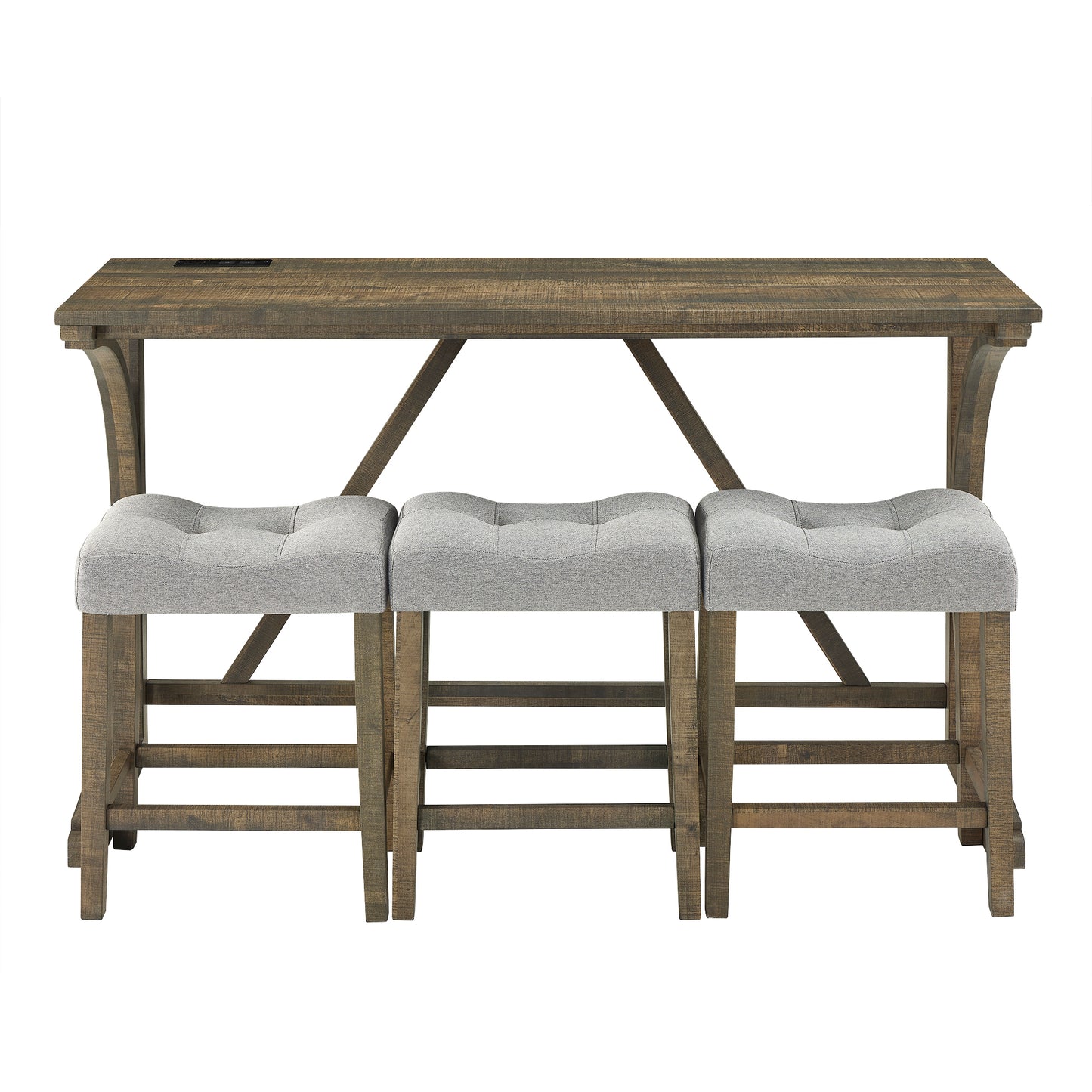 View compareHalston - Set of 4 - 24" Industrial Dining Table Set with Power Outlet - 59” x 19” x 36” - Solid Wood & MDF - Brown and Yellow