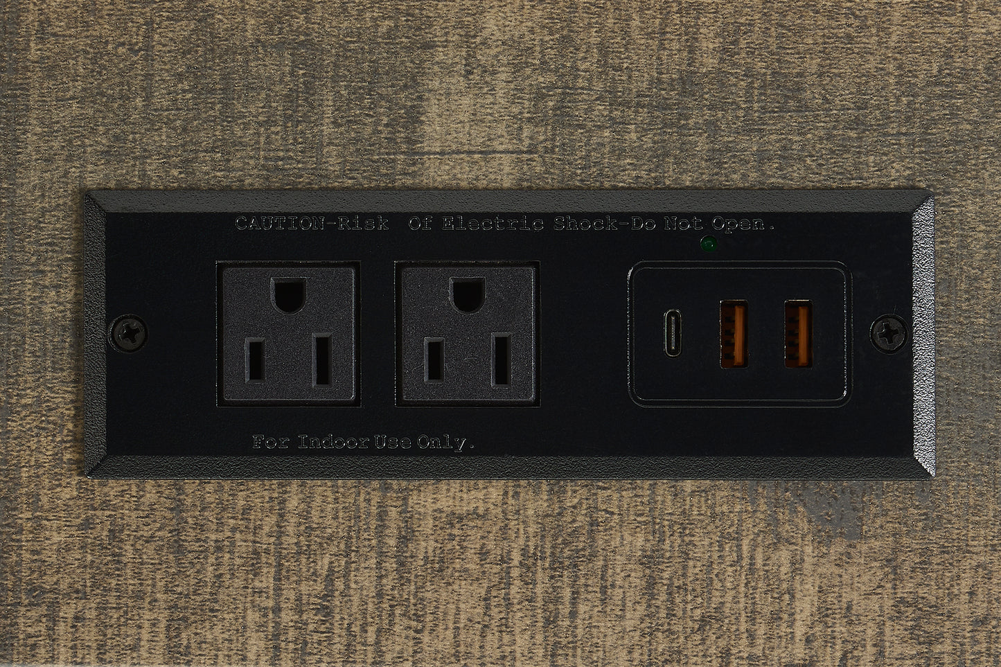 Halston - Set of 4 - 24" Industrial Dining Table Set with Power Outlet - 59” x 19” x 36” - Solid Wood & MDF - Brown and Yellow