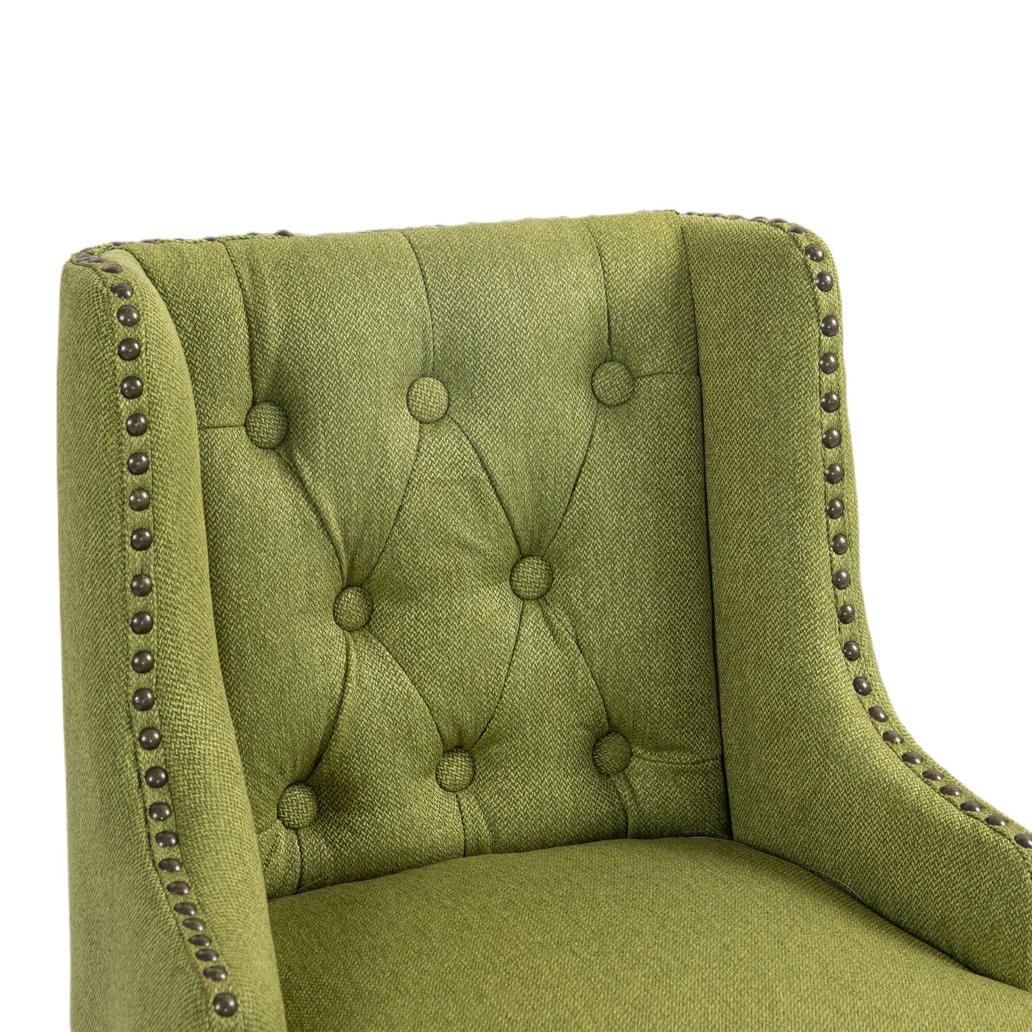 Everton Olive Linen Swivel Counter Height Bar Stools—a luxurious set of two counter-height chairs crafted to bring an elevated aesthetic and exceptional comfort to your kitchen or dining room. Designed with a modern twist on traditional style, these bar stools feature plush olive linen upholstery, firm foam cushioning, and a high, ergonomic backrest that provides exceptional support for relaxed, prolonged seating.