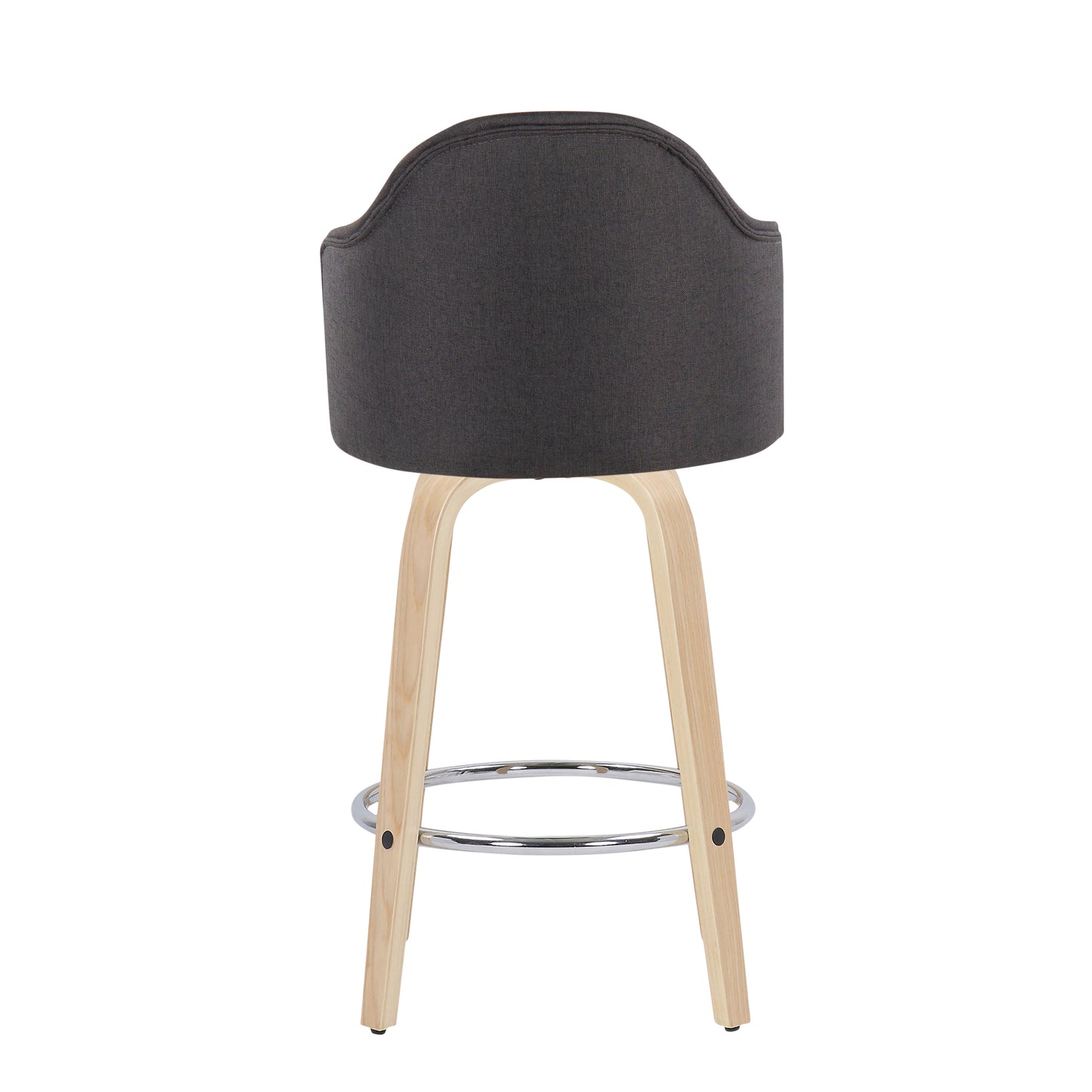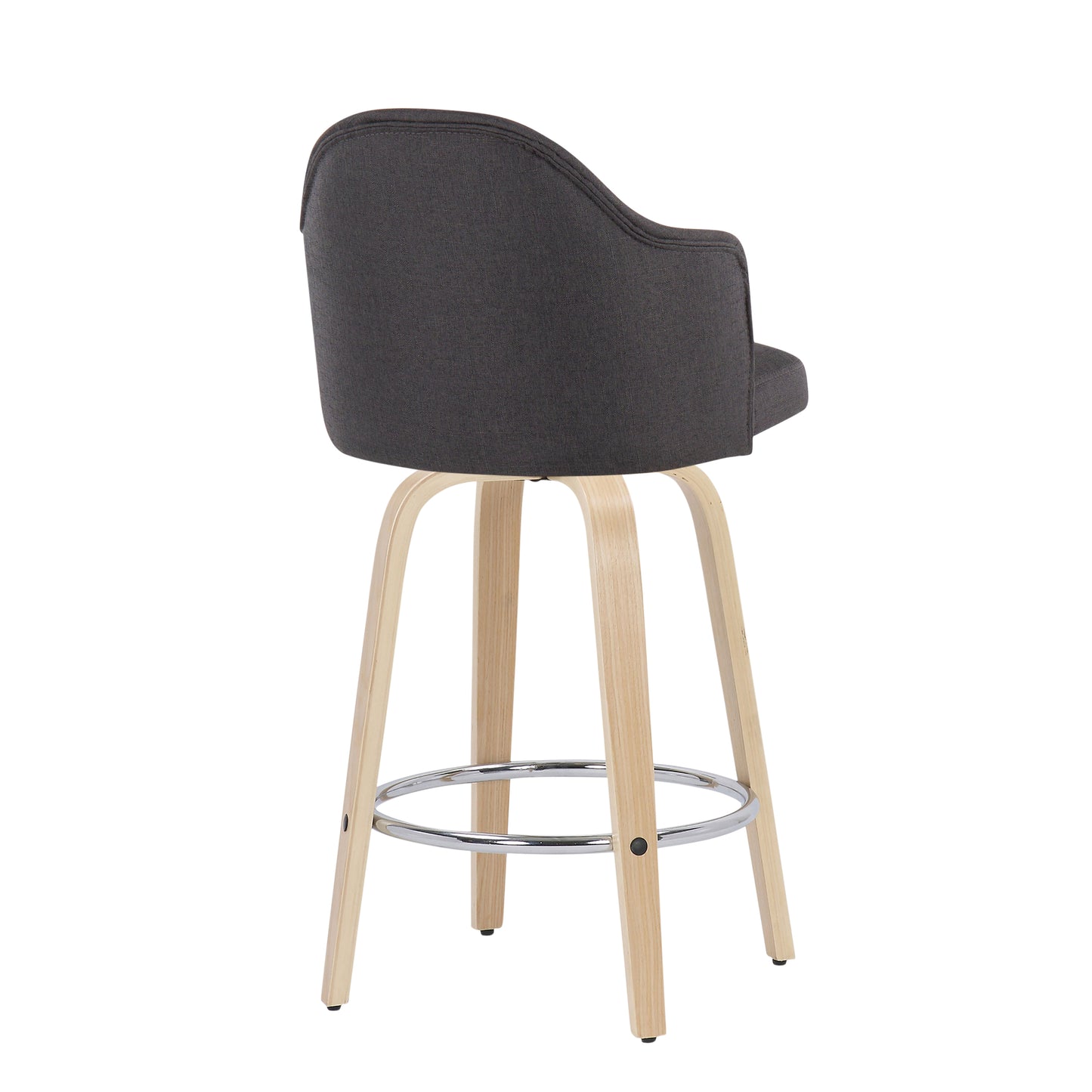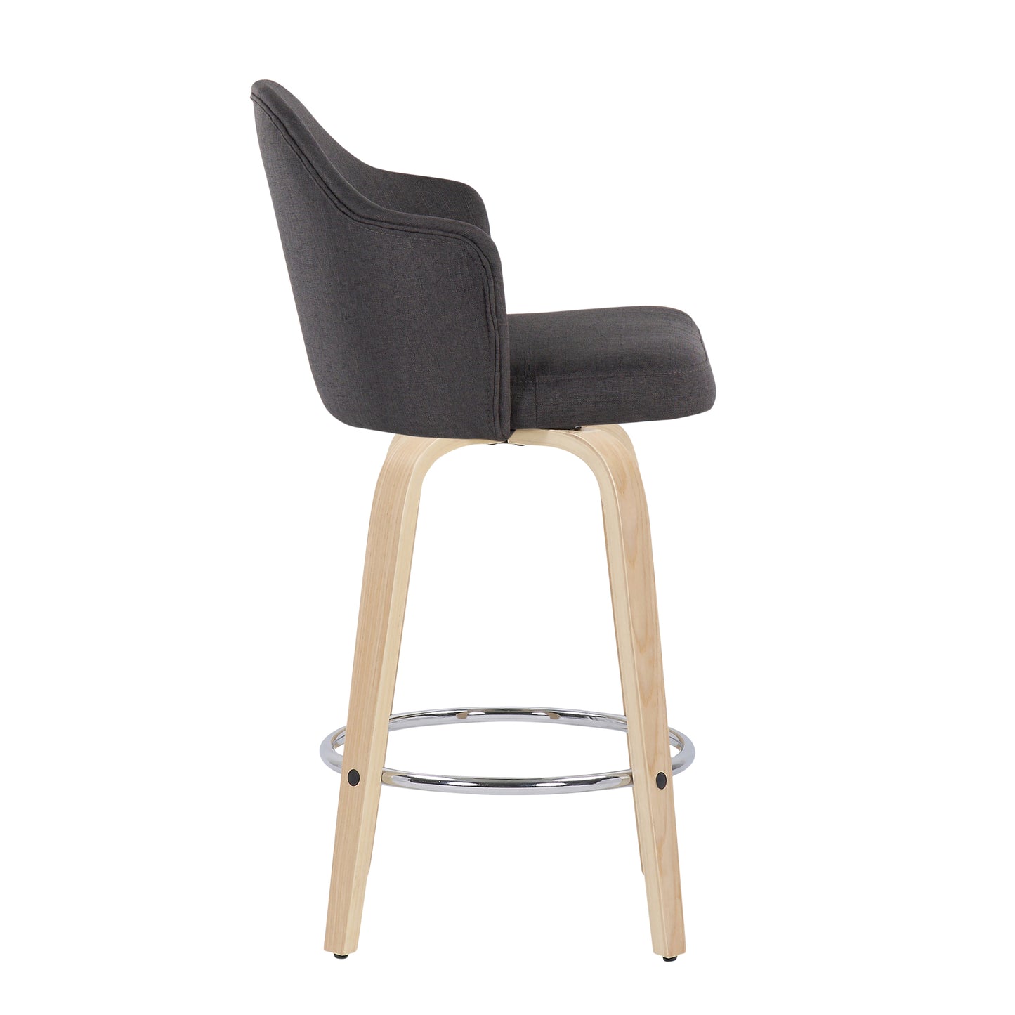 View compareKiran - Set of 2 - 26" Mid-Century Swivel Counter Stools with Charcoal Fabric, Natural Bamboo Legs, and Chrome Footrest