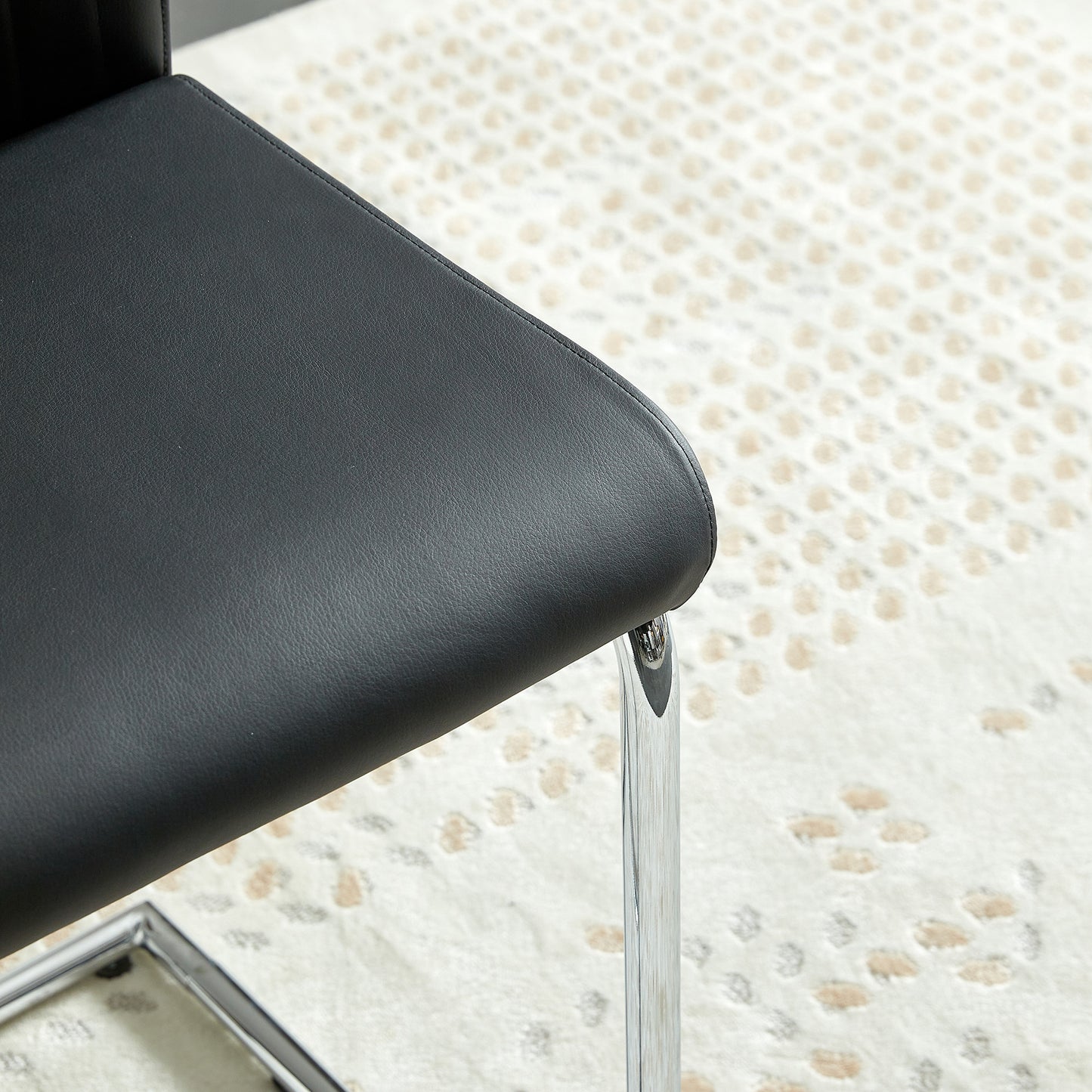Huranda - Set of 2 - 24" Black PU Leather Modern Bar Chairs with Chrome Metal Pipe Legs - Ergonomic Design - Comfortable Seating for Kitchen, Dining & Bar Areas