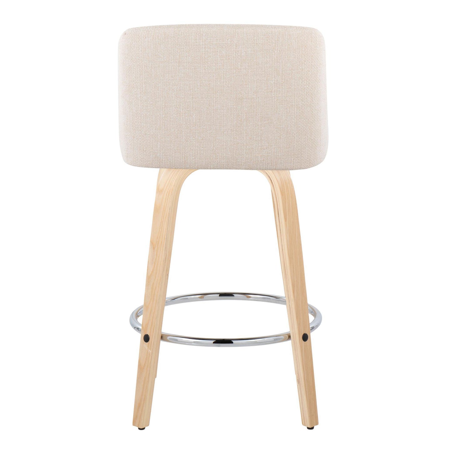 Setup your home with the luxurious and contemporary design of the Tulia 26" Fixed-Height Counter Stools. Combining natural wood accents with plush cream noise fabric upholstery, these stools bring both style and comfort to your dining or bar area. The padded swivel seats provide a 360-degree turn for versatility, while the sturdy bent wood legs and sleek round chrome metal footrest ensure durability and support. Perfectly suited for modern spaces, the Tulia stools come in a set of two, making them a practical and elegant addition to your home.