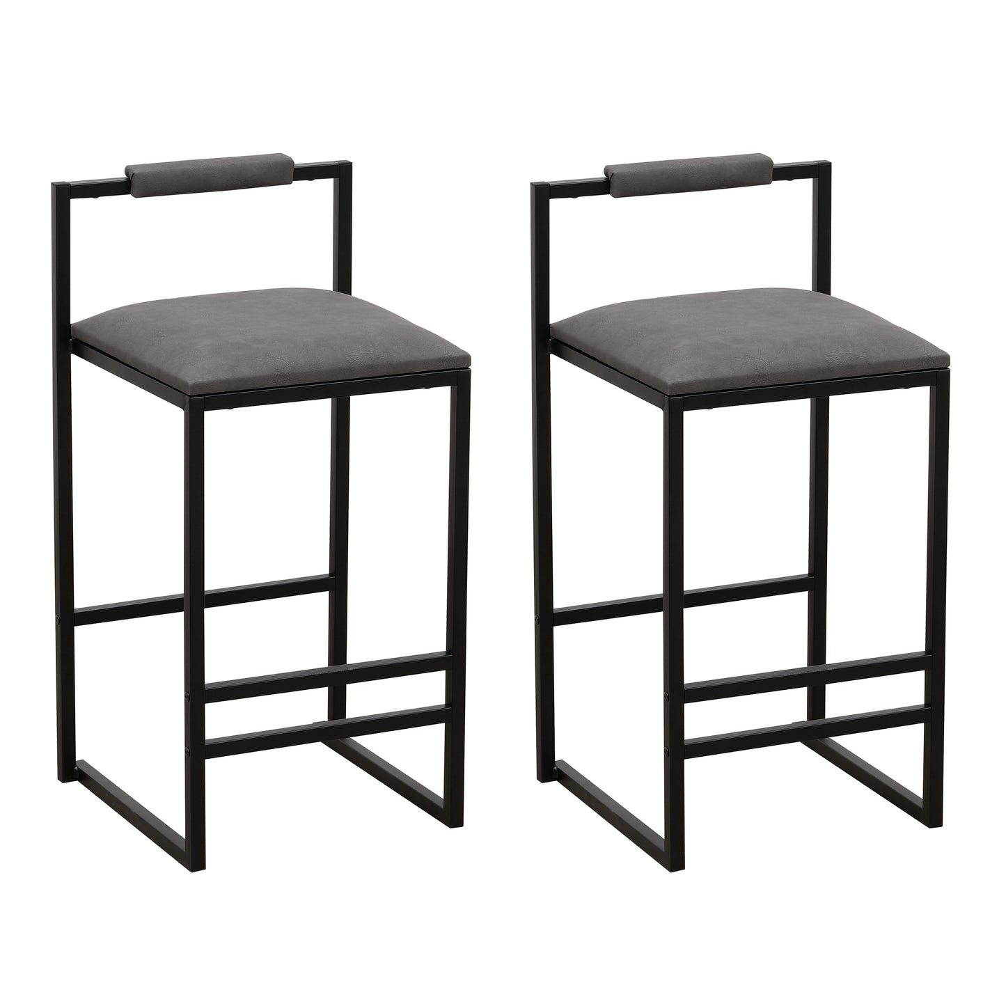 View compareSumner - Set of 2 - 16.54" Modern Counter Height Bar Stools with Armless Design, Gray PU Upholstered Seats & Black Metal Legs