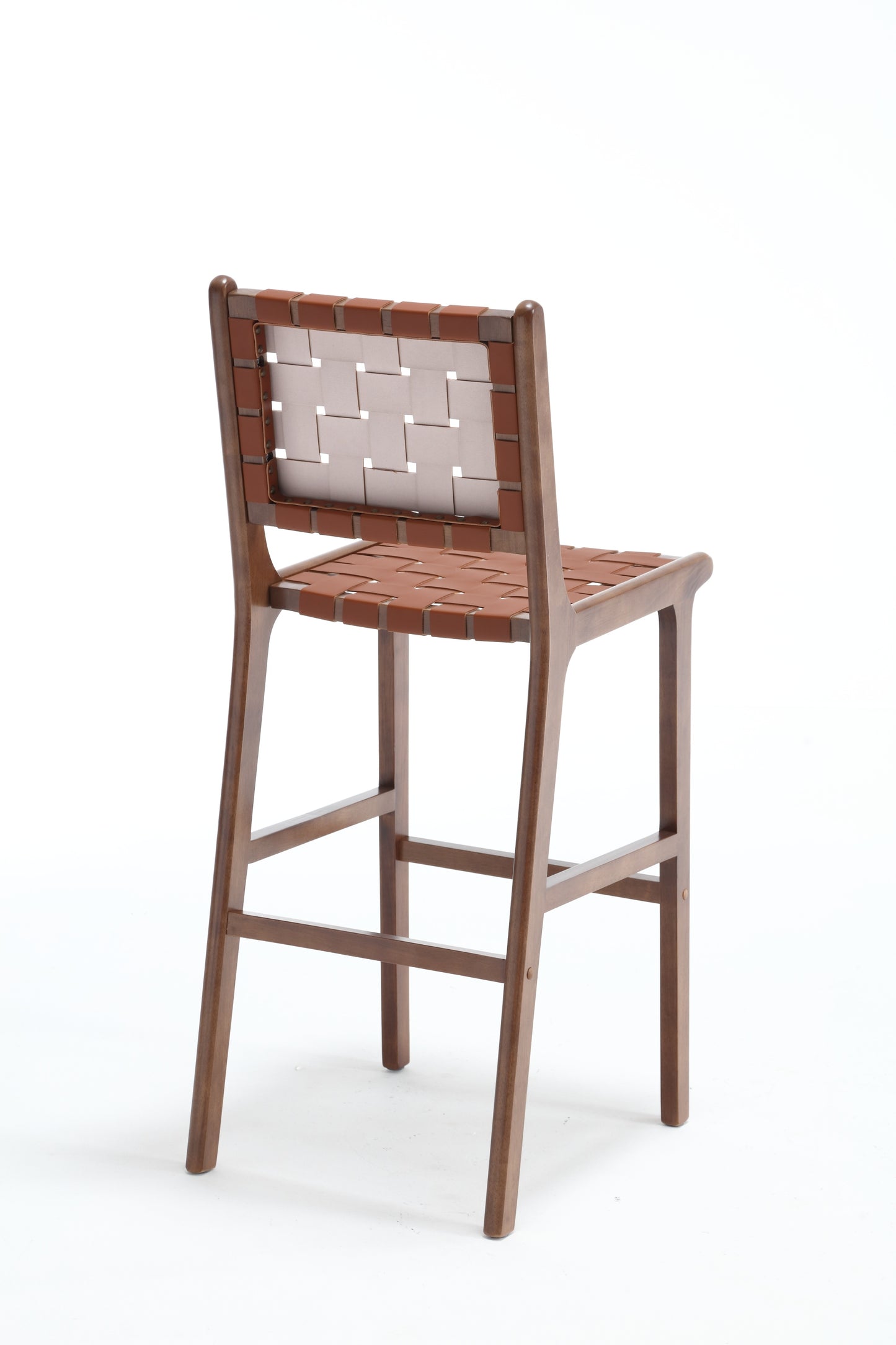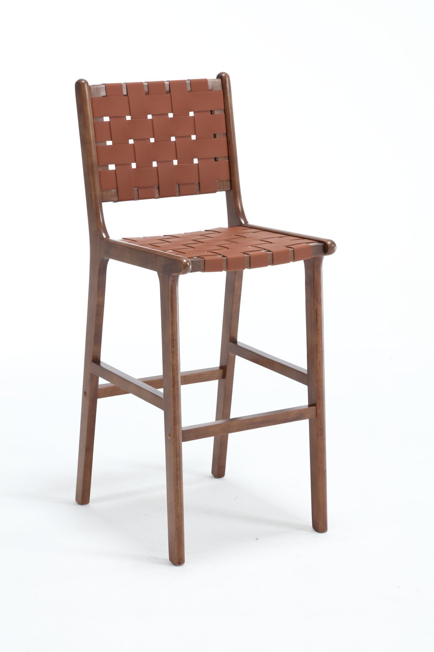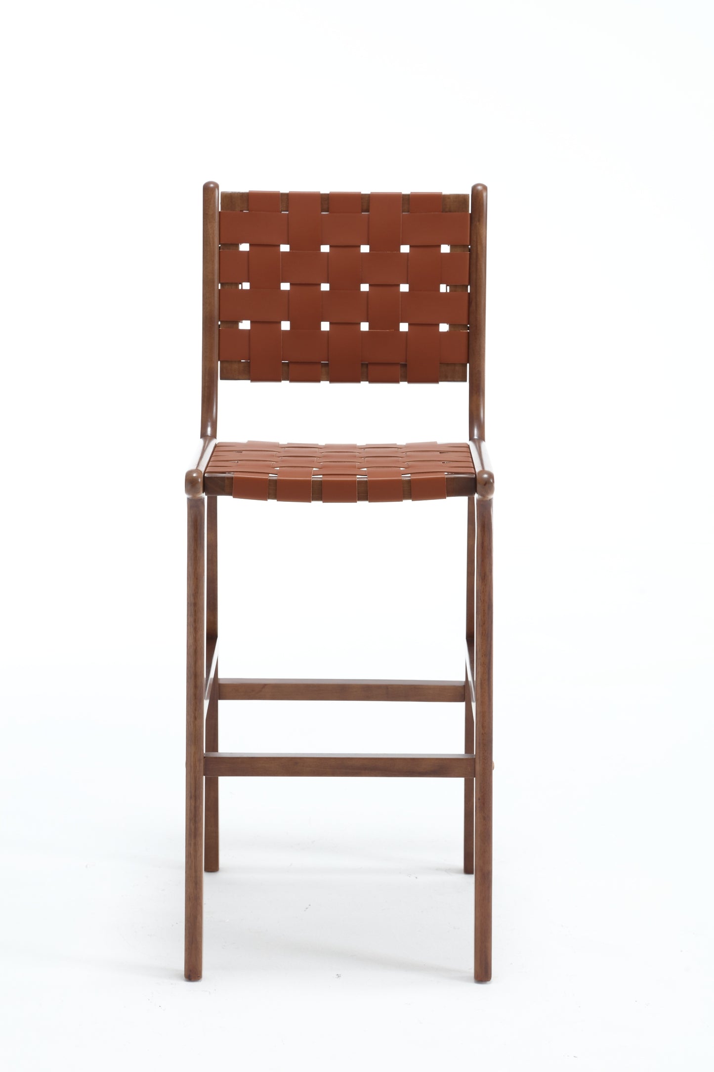 Serenity - Set of 2 - 27" Woven Saddle Leather Bar Chairs with Solid Wood Legs - 30" Seat Height - Brown