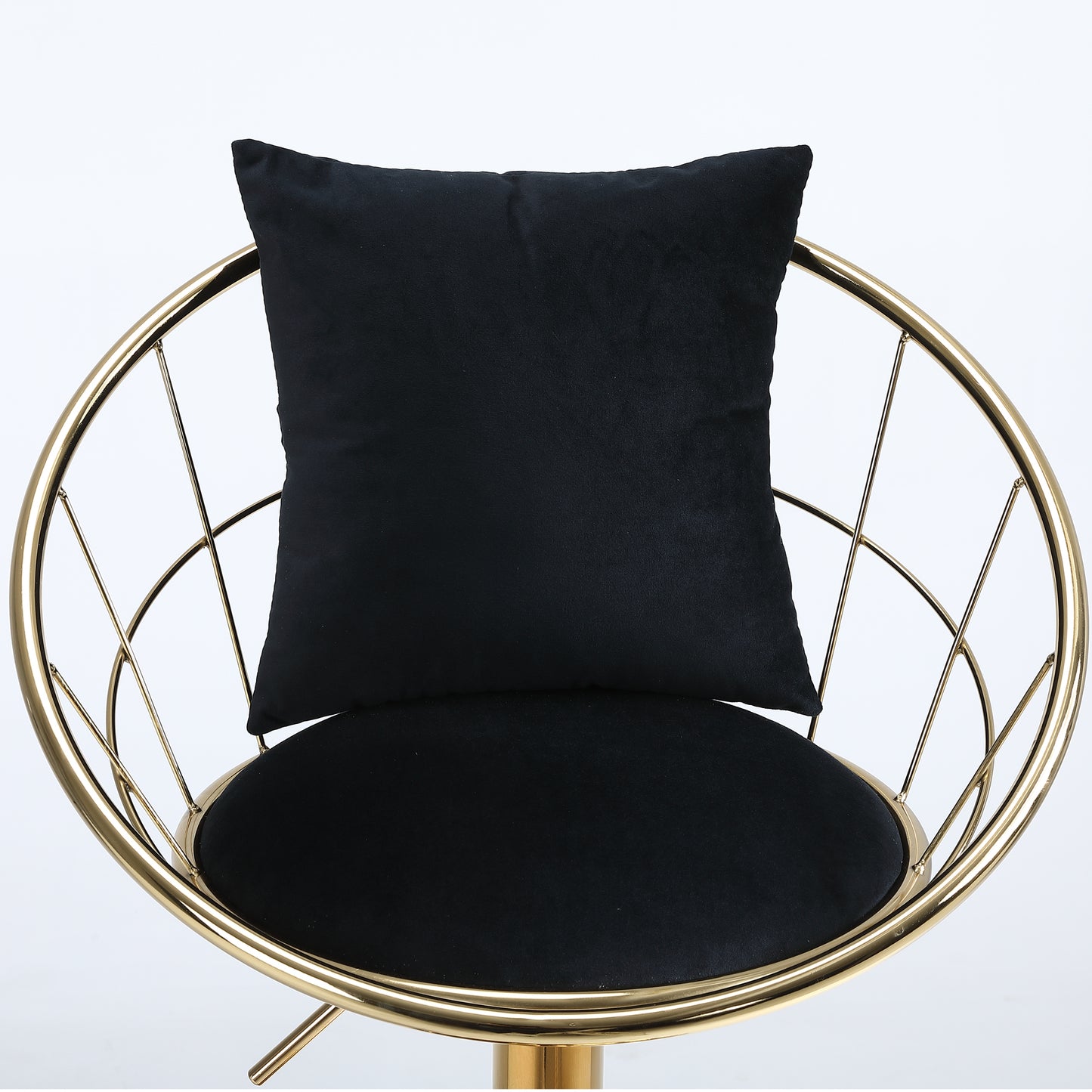 Lucent - Set of 2 - 25" Black Velvet Adjustable Height Bar Stools with Pure Gold-Plated Base, 360° Rotation, and Unique Design