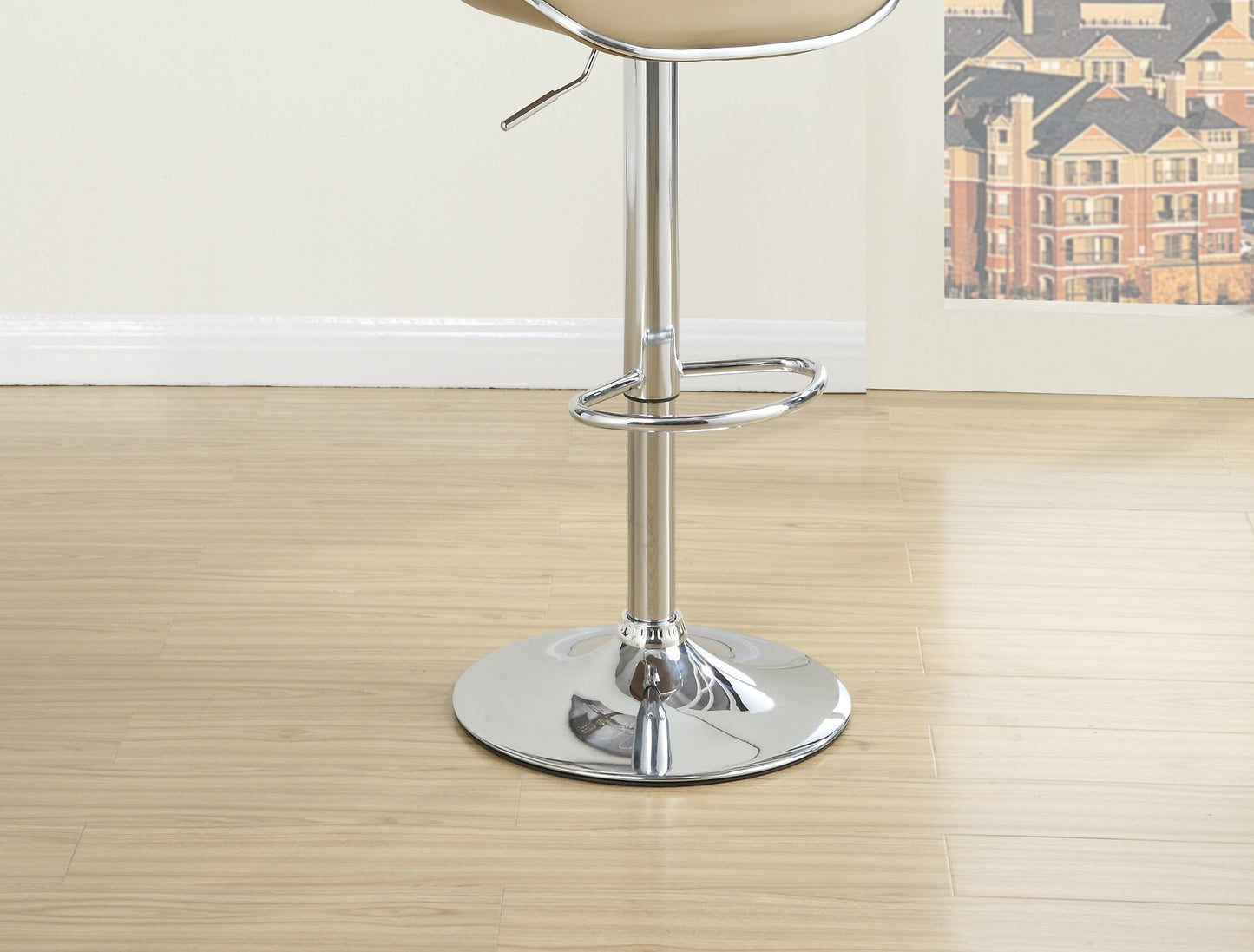 Accentuate your dining space with the Halden Set of 2 Brown Faux Leather Bar Stools. Perfect for kitchen islands or dining areas, these contemporary stools are designed with comfort and style in mind. Featuring cushioned faux leather seats and an adjustable height function, they ensure relaxation and convenience while adding a modern touch to any space. The sleek metal frame and rounded footrests offer both durability and comfort, making them an ideal choice for long meals or casual gatherings. Whether you're at a breakfast bar or hosting dinner, these stools will enhance your décor.
