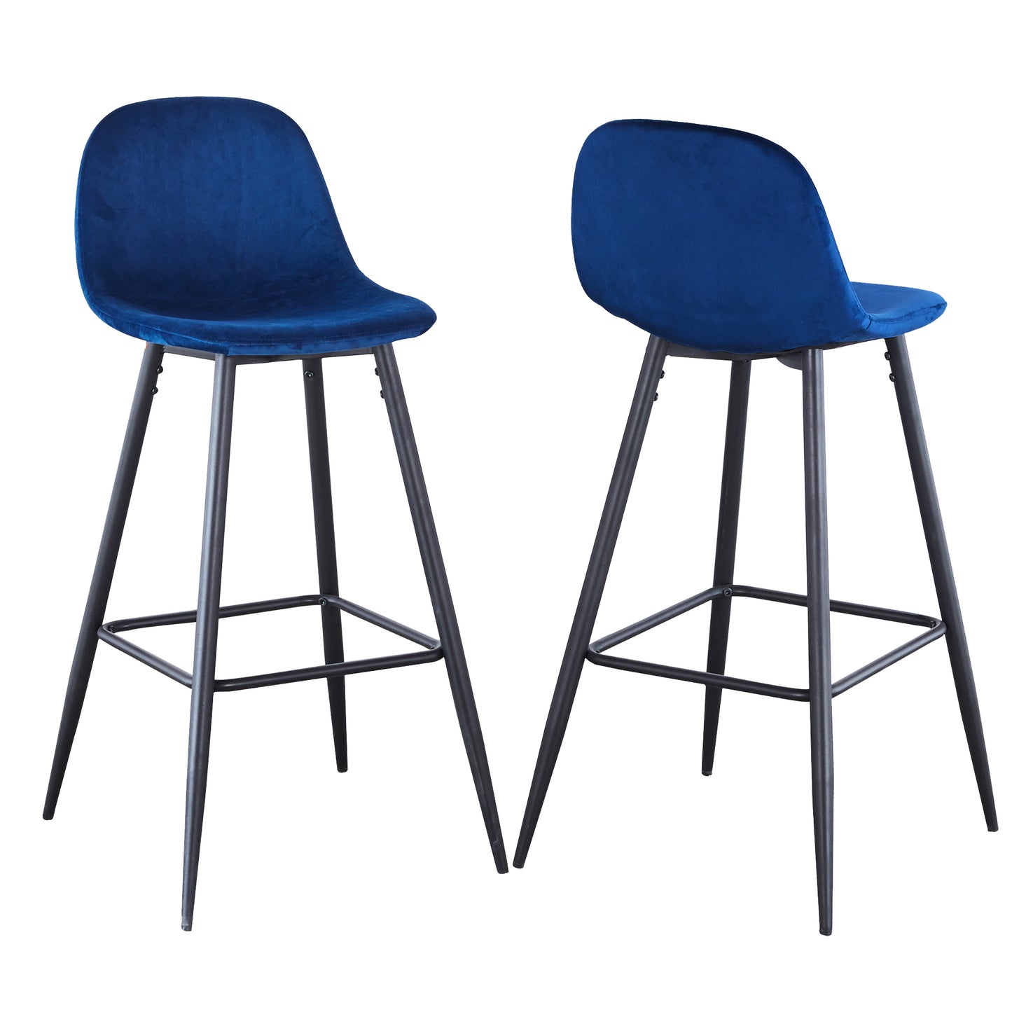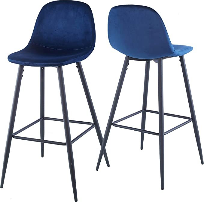 View compareEryndor - Set of 2 - 30" Blue Velvet Bar Stools with Backrest, Sturdy Black Metal Legs, and Footrests for Kitchen or Bar