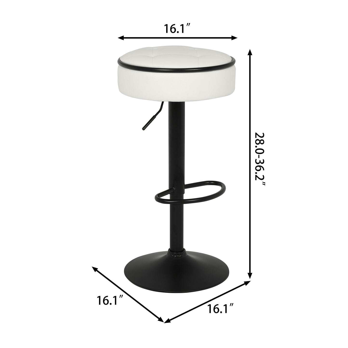 Transform your space with these stylish and functional White Faux Leather Height Adjustable Bar Stools. With a sleek design and durable construction, these stools add a touch of sophistication to any room. Perfect for your kitchen, dining room, or home bar, they are designed for comfort, versatility, and convenience. The 360° swivel and adjustable height make them ideal for any space, while the built-in storage compartment offers a discreet way to keep essentials at hand.