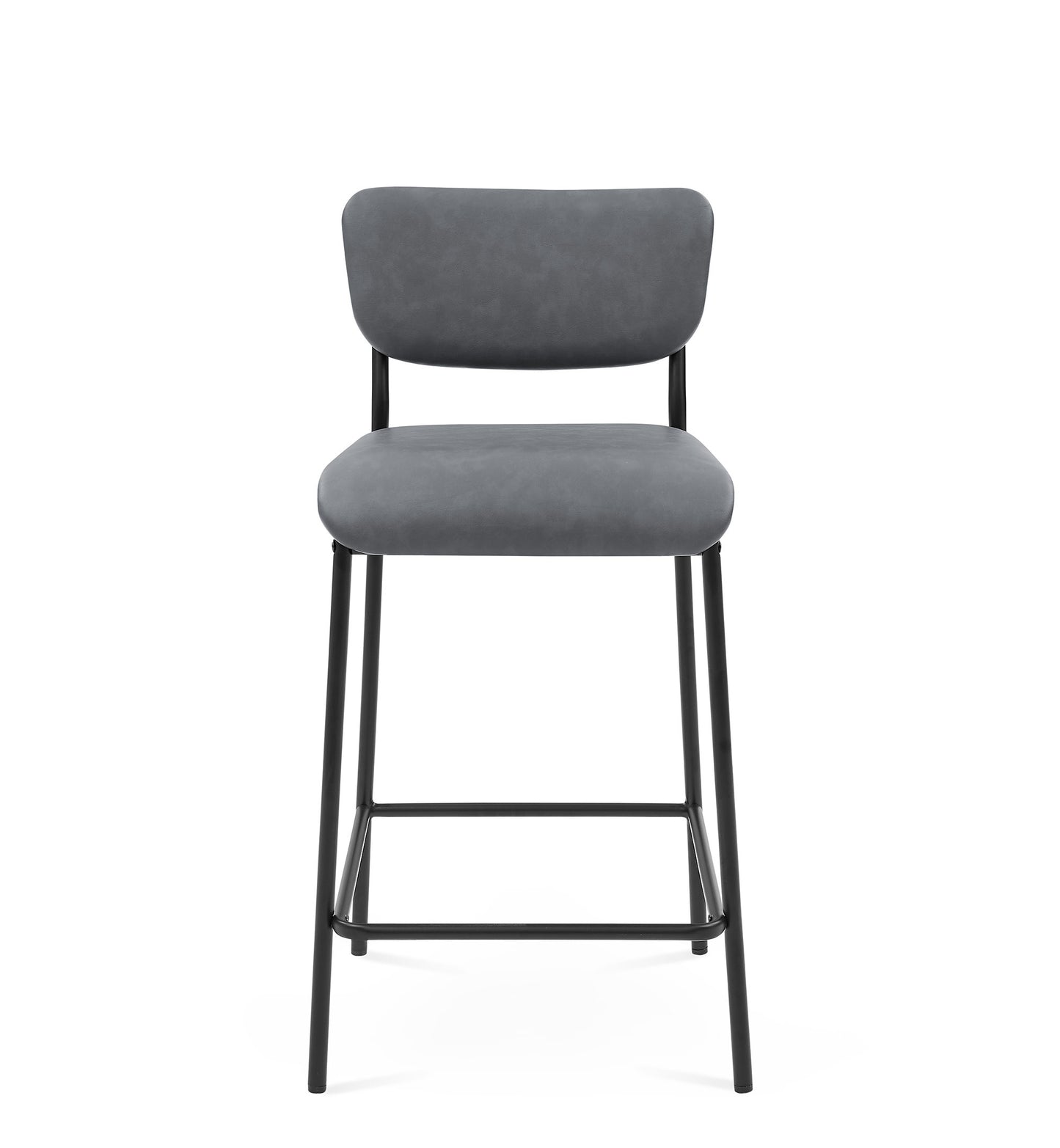 View compareKensington – Set of 2 – 25" Grey Faux Leather Counter Stools with Backrest, Footrest & Sturdy Metal Frame