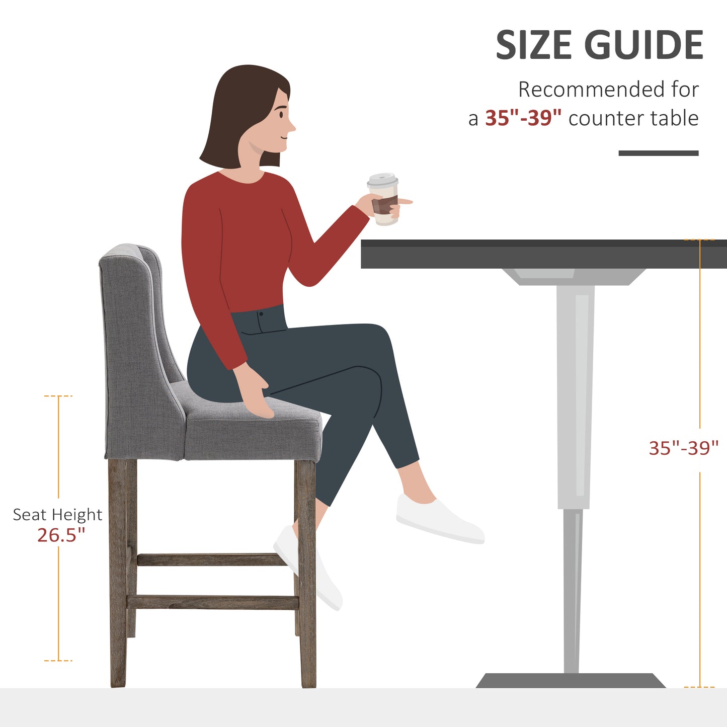 View compareLuca - Set of 2 - 30" Grey Tufted Upholstered Bar Stools with Back, Rubber Wood Legs, Seat Height for Kitchen & Dining Room