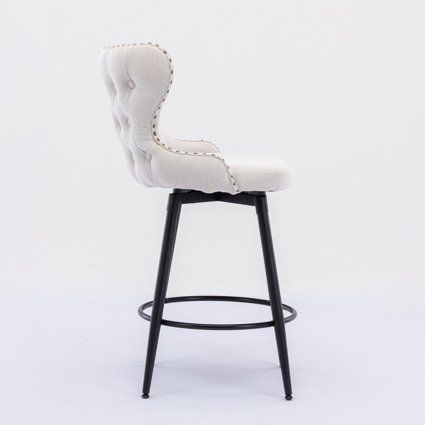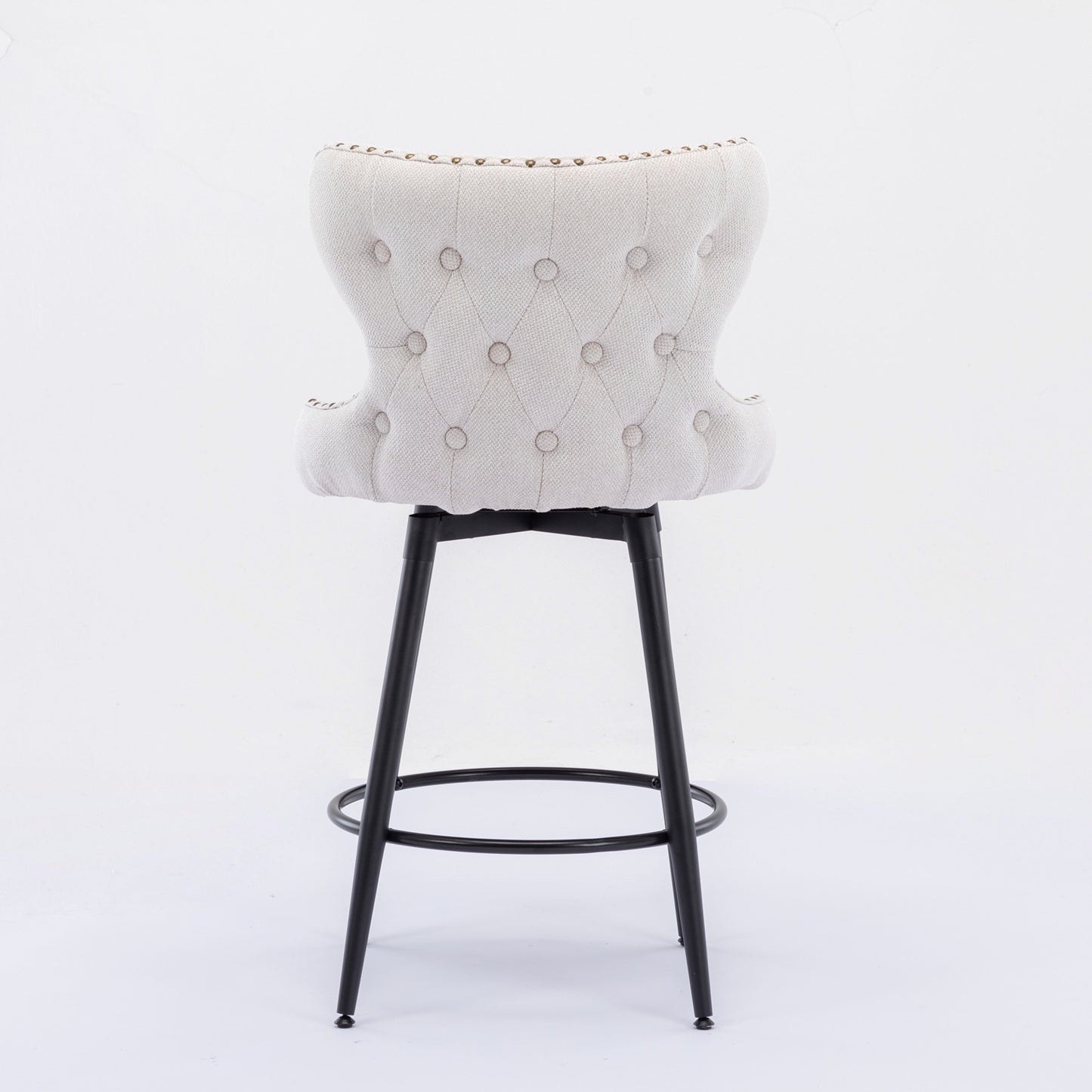 Mitch - Set of 2 - 25" Beige Modern Linen Fabric Bar Chairs with 180° Swivel