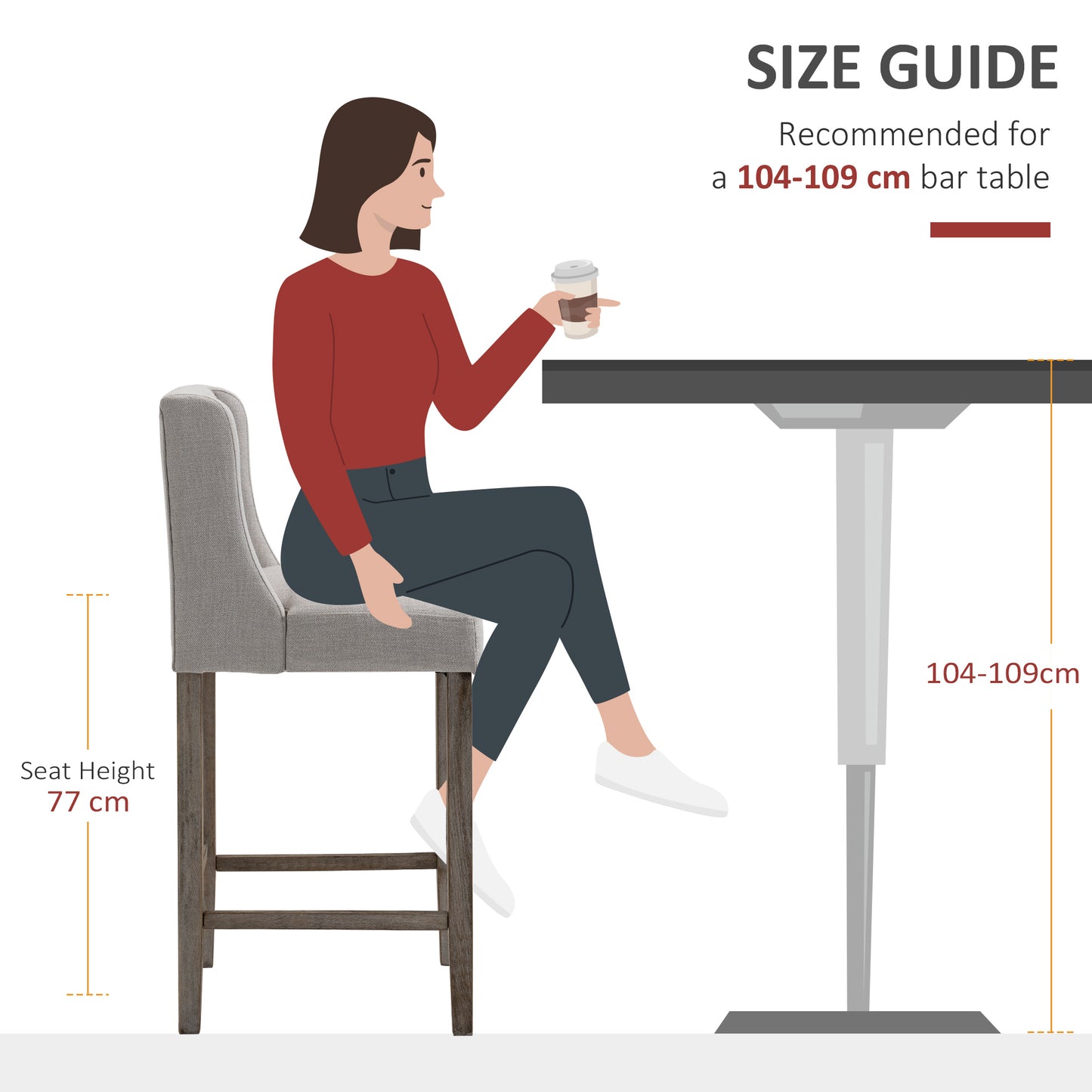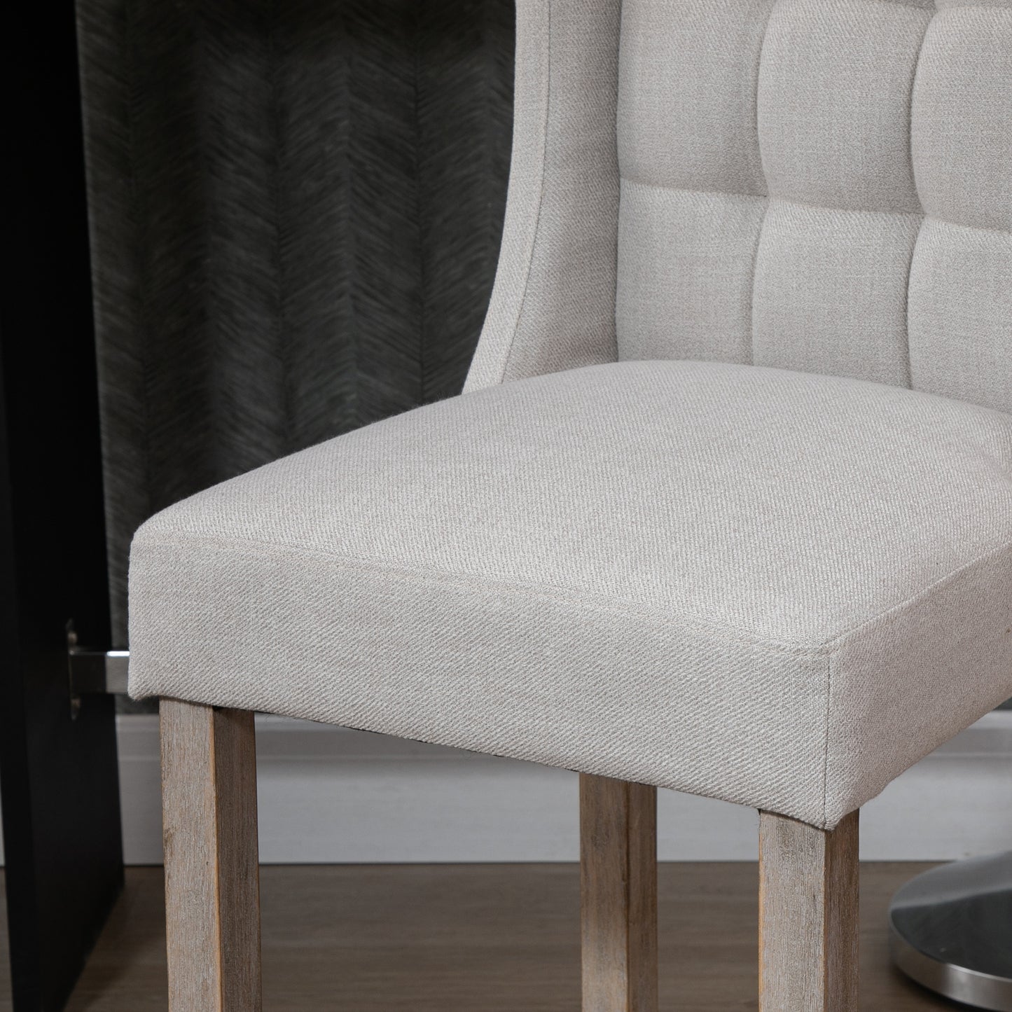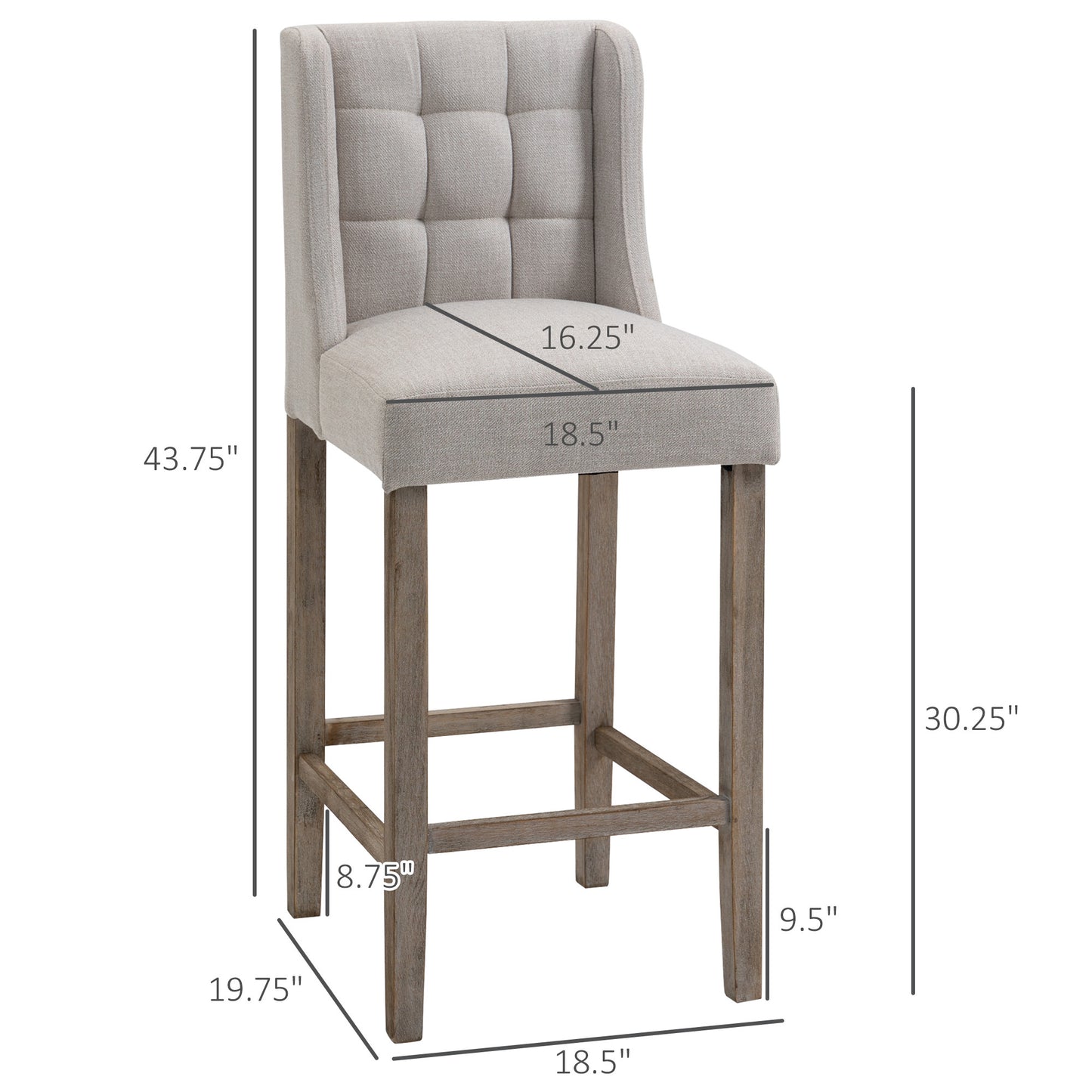 Pluvia - Set of 2 - 31" Beige Tufted Bar Stools, Upholstered Pub Chairs with Rubber Wood Legs, Modern Design for Kitchen & Dining Room