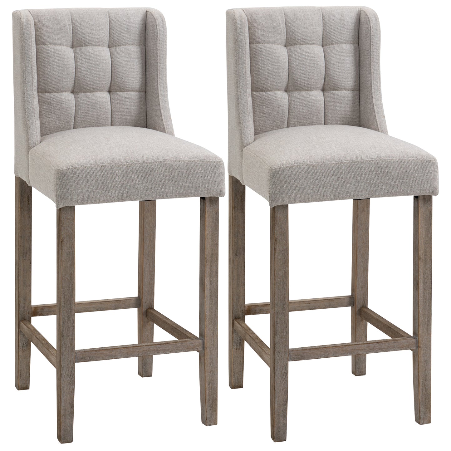 View comparePluvia - Set of 2 - 31" Beige Tufted Bar Stools, Upholstered Pub Chairs with Rubber Wood Legs, Modern Design for Kitchen & Dining Room