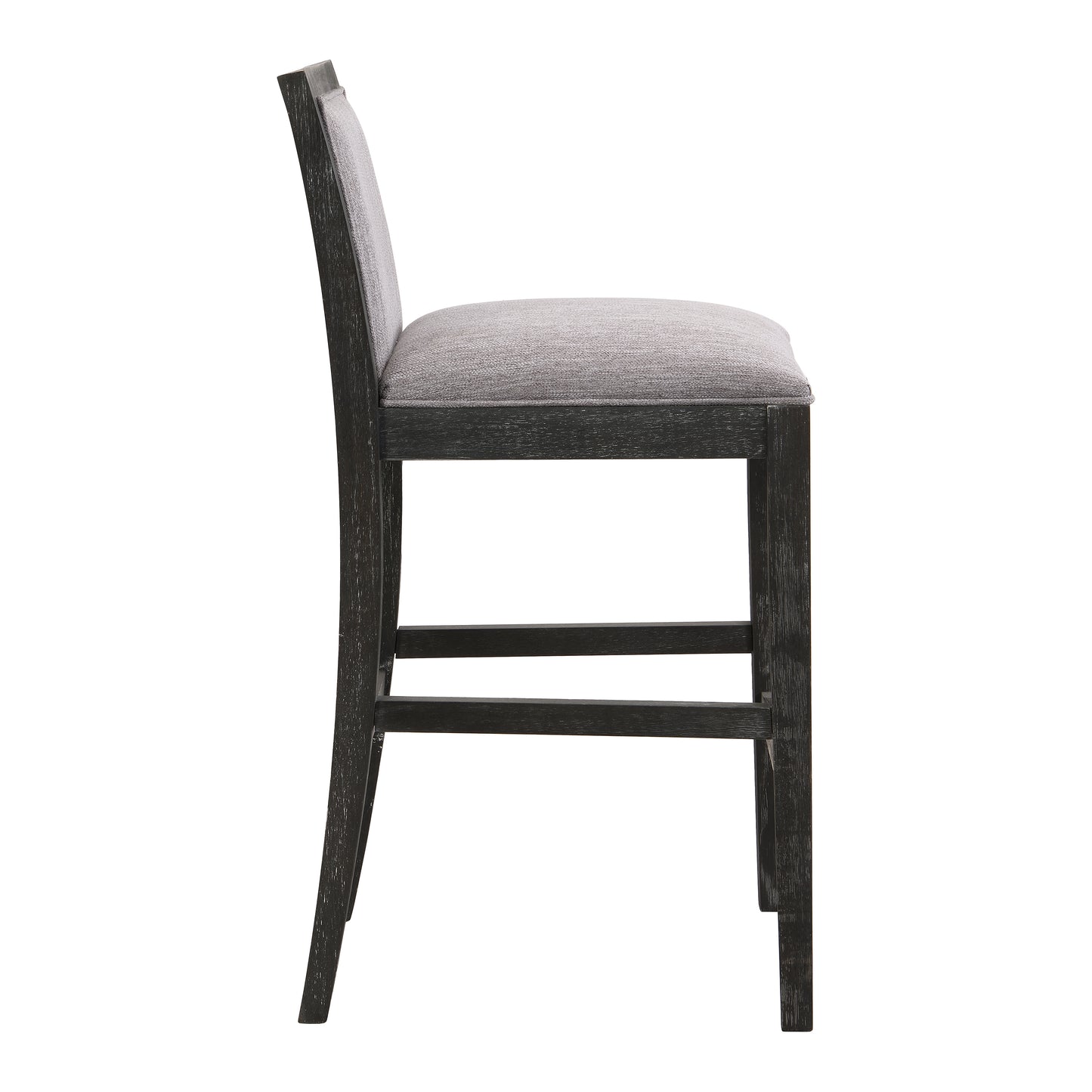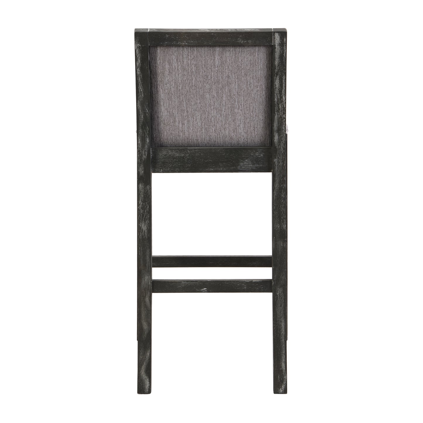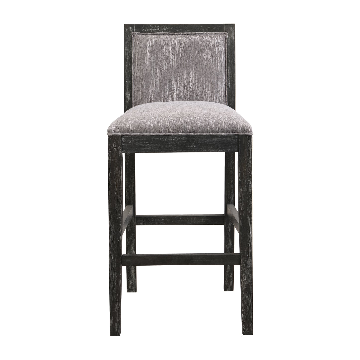 Boost your home décor with this stylish Selina set of 2 retro bar stools, designed for comfort, durability, and timeless appeal. Featuring a soft grey fabric seat with plush sponge cushioning, these stools provide a cozy seating experience perfect for your kitchen island, dining area, or bedroom. The black rubberwood frame boasts a distressed finish, adding a touch of rustic elegance to your space. Crafted with eco-friendly and sturdy materials, these stools seamlessly blend function with sophistication.