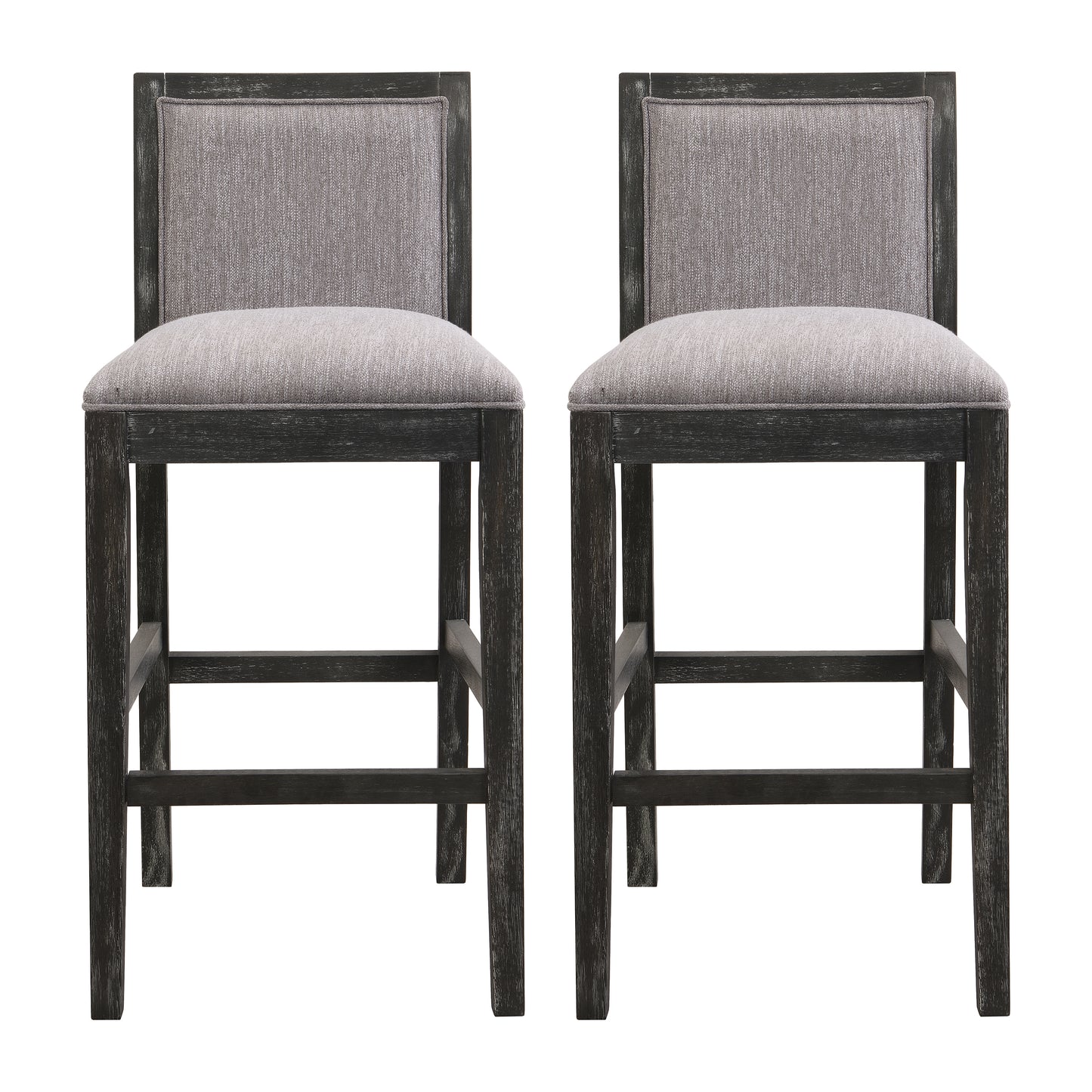 View compareSelina Set of 2 - 30" Retro Bar Stools with Grey Upholstered Seat, Black Rubberwood Frame, and Sponge Cushion - Perfect for Kitchen, Dining Room, or Bedroom